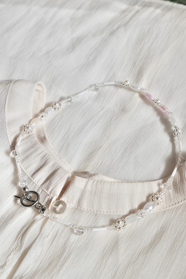 オーバル型のガラスビーズを 組み合わせた透明感のあるネックレス 透明感のあるガラスビーズなども組み合わせて たからものが入れた箱を開けた時の きらきら感をイメージしてみました。 金具部分:304ステンレス サイズ:40cm ●金具交換について● 金具変更が必要な方は、 選択タブよりお選びください☺️☺️ 特に記載がない場合はお写真と同じ金具で 発送させて頂きます。 ●作品について● ハンドメイド作品となります。 既製品より繊細な作りとなっております。 お取り扱いにご注意ください☺︎ ●配送方法● クリックポスト (その他発送方法ご希望の方は、 事前にメッセージにてお伝えください) ●メンテナンス受付や最新情報● 金具の変色、破損、メンテナンス等は インスタのDMよりお問合せください。 イベント情報などInstagramで 投稿しております。 https://www.instagram.com/tsukiakari.accessory/