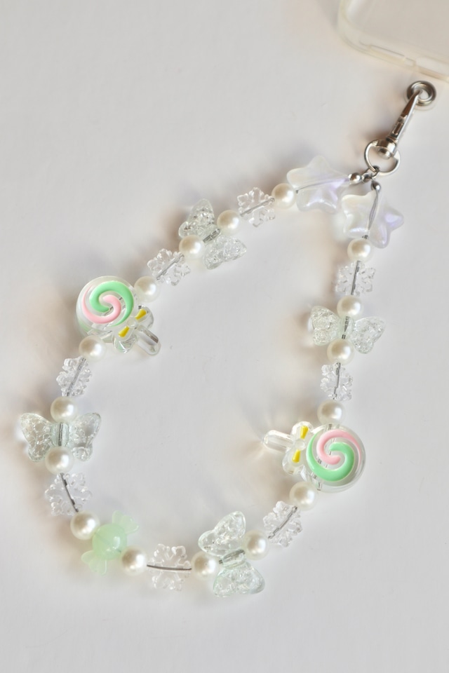 【スマホストラップ】Candy /ビーズストラップ スマホストラップ ハンドストラップ 推しカラー あめだま キャンディ 雪の結晶 グリーン