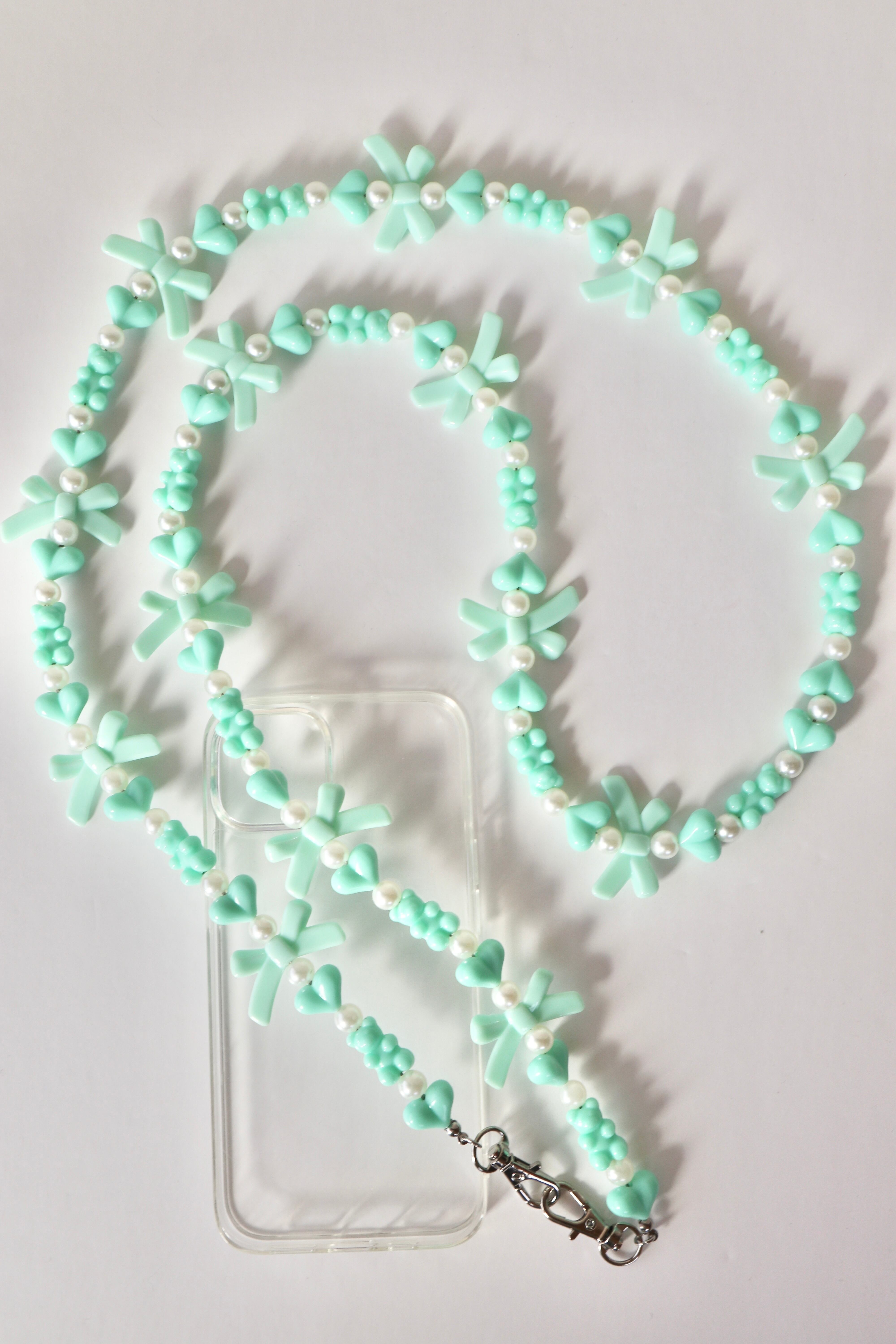 【スマホショルダー】 ribbon bear/ スマホショルダー ストラップ リボン くま ハート 推し活 推しカラー