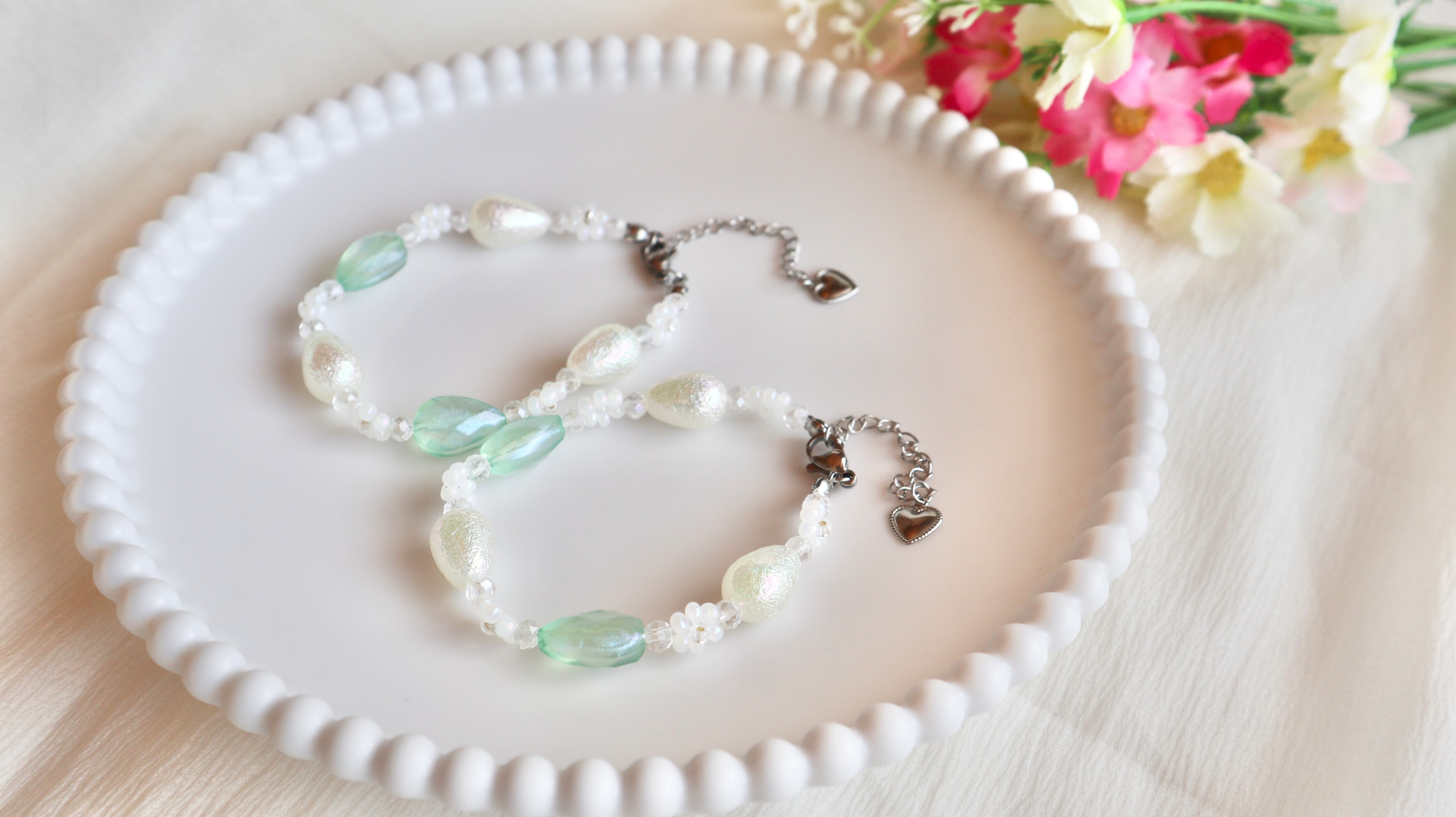【bracelet】Green drop /ブレスレット ステンレス金具 パステルカラー 推しカラー 推し活
