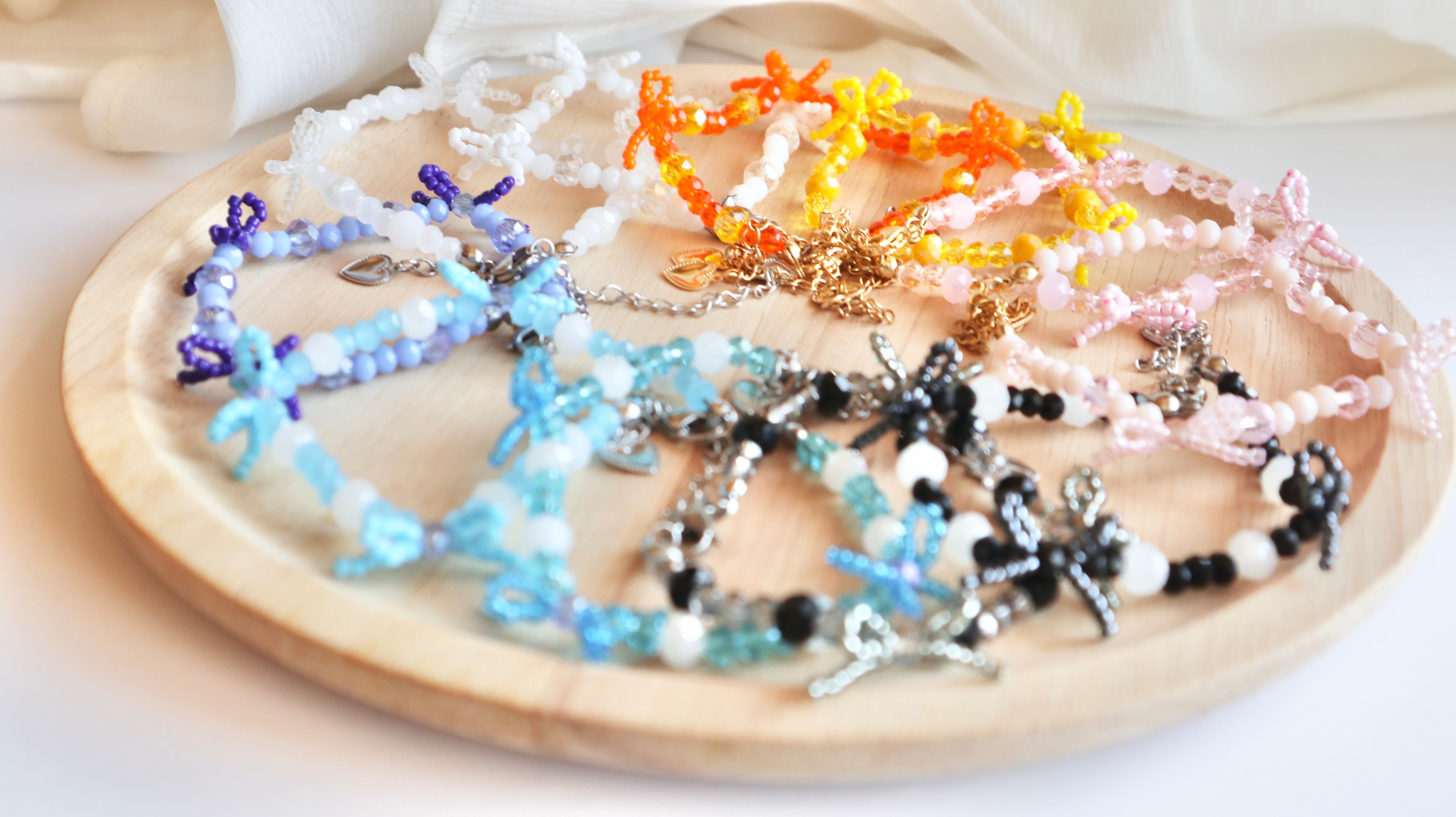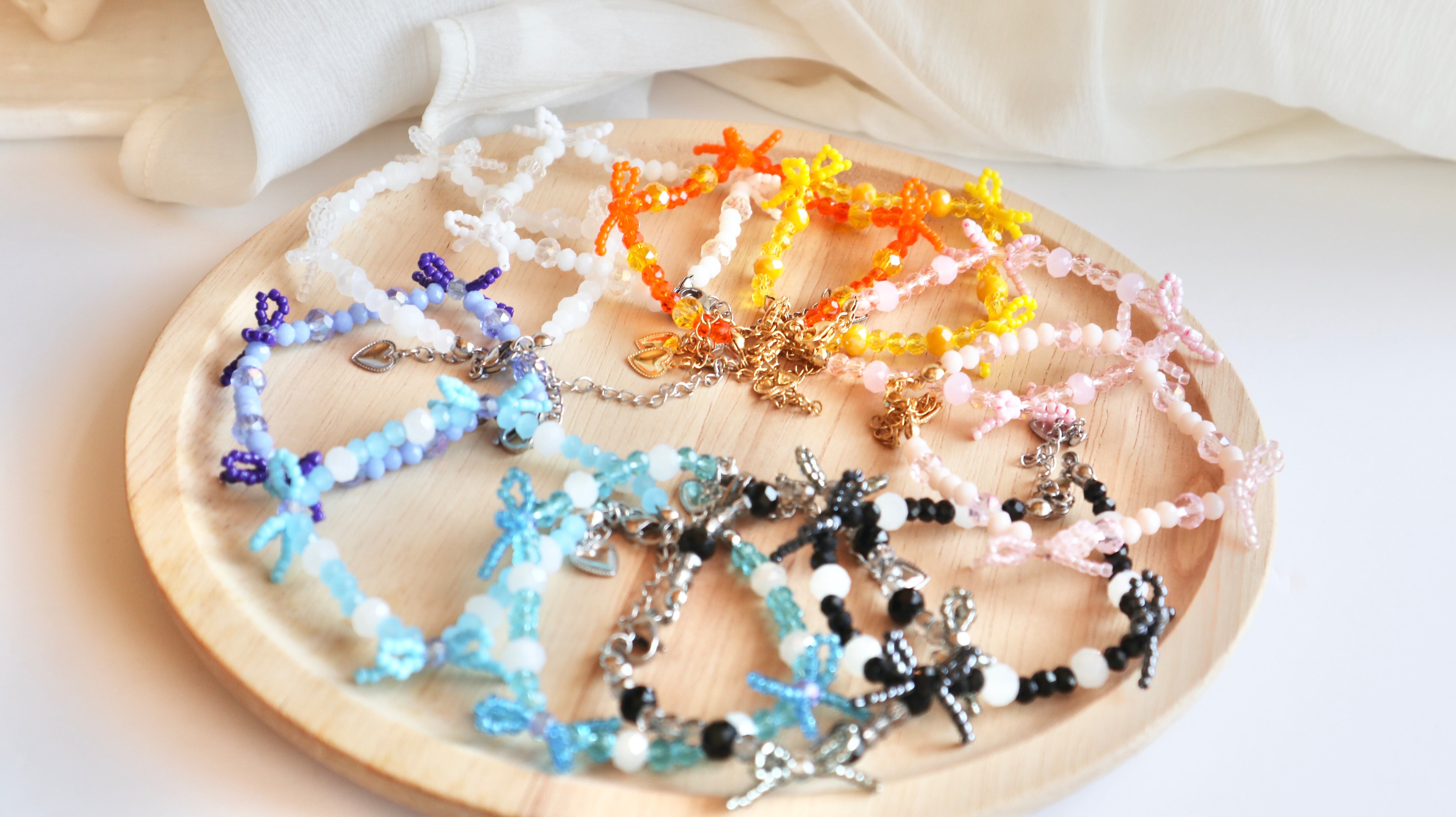 【bracelet】colorful ribbon collection / ビーズリボン ビーズブレスレット ビーズアクセサリー 推しカラー