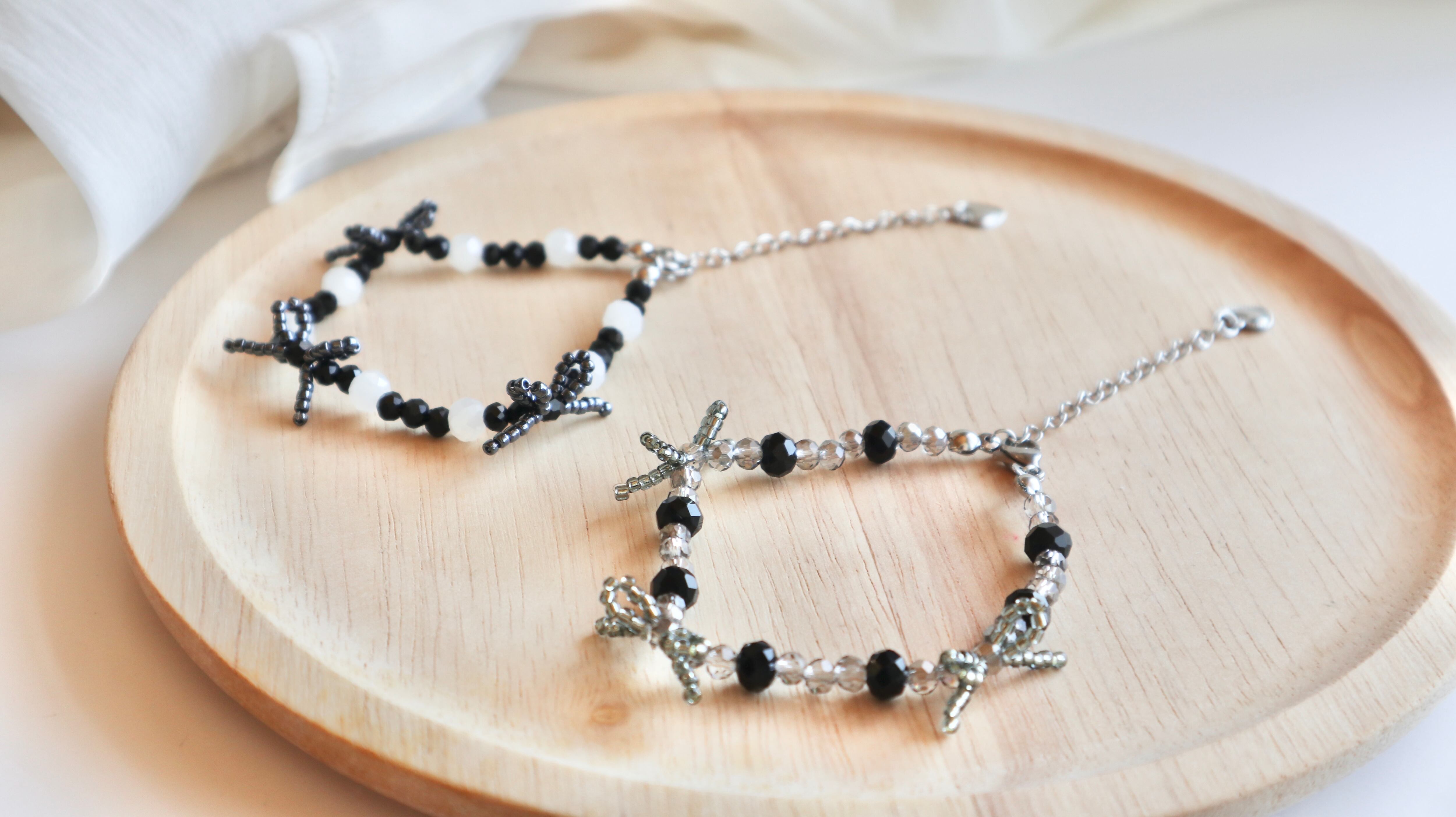 キラキラのガラスビーズと組み合わせて