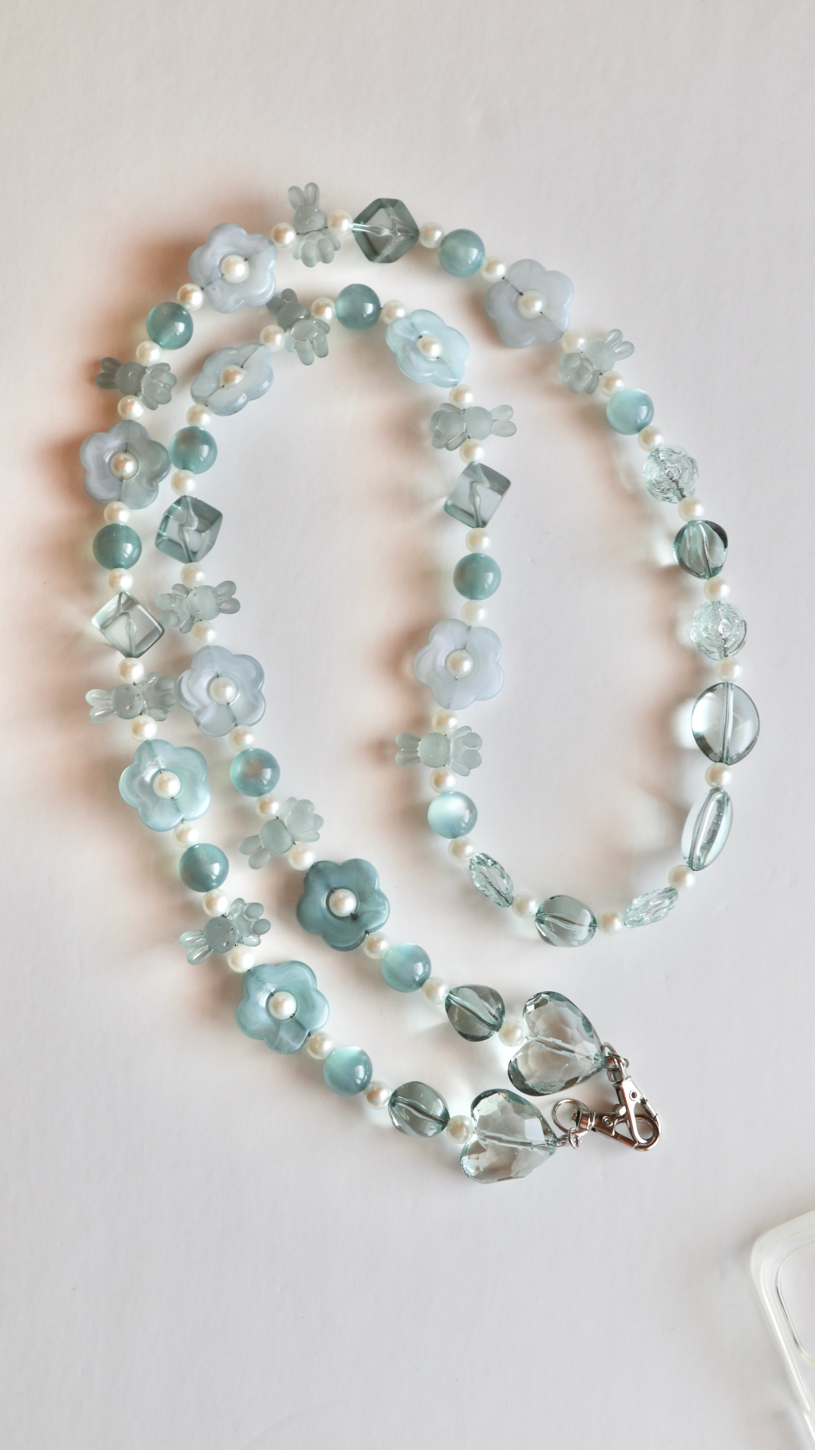 【スマホショルダー】Rabbit Flower /スマホショルダー スマホストラップ ショルダーストラップ うさぎ 花 ハート みどり