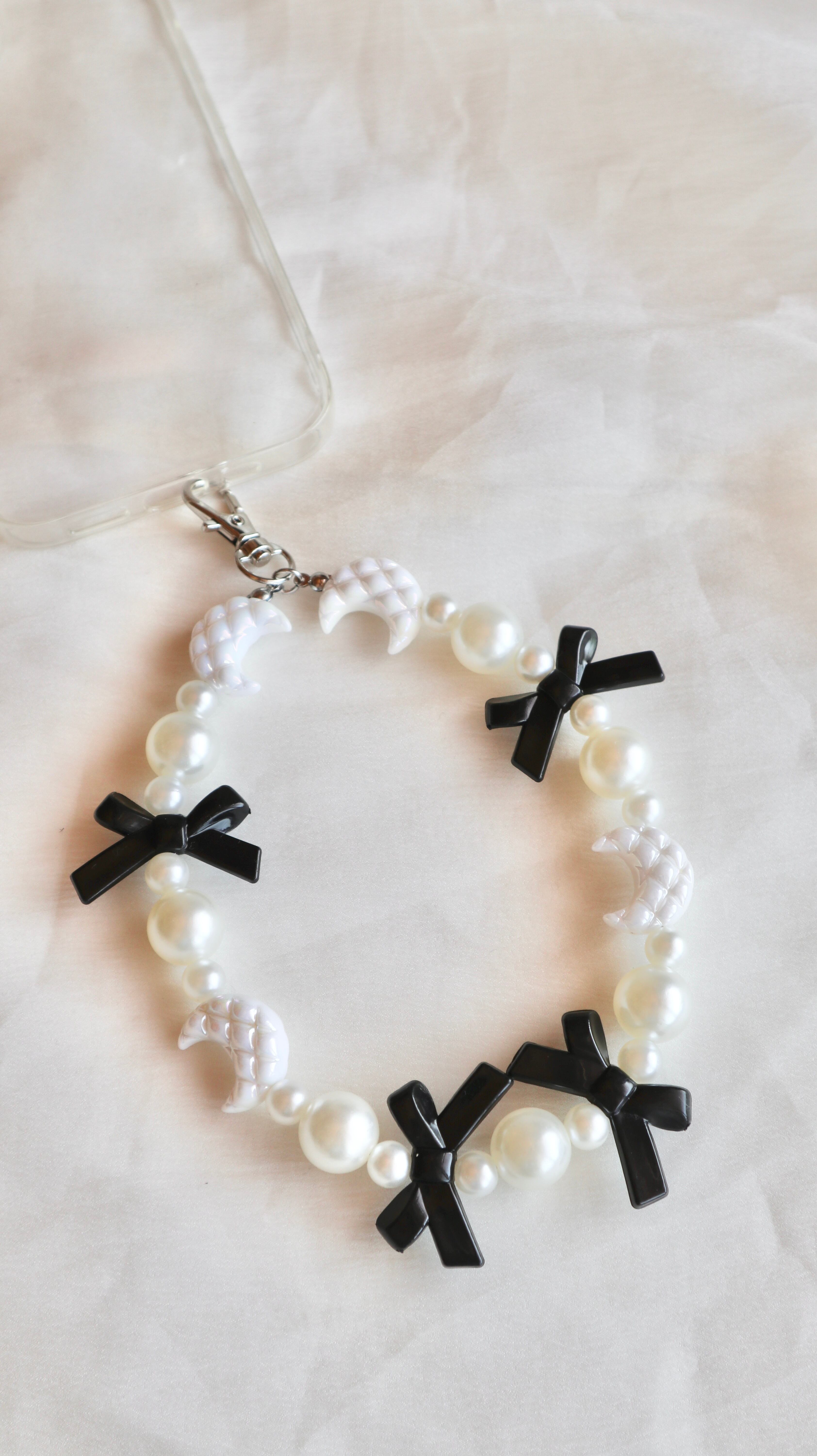 【スマホストラップ】moon ribbon /ビーズストラップ スマホストラップ ビーズアクセサリー スマホアクセサリー
