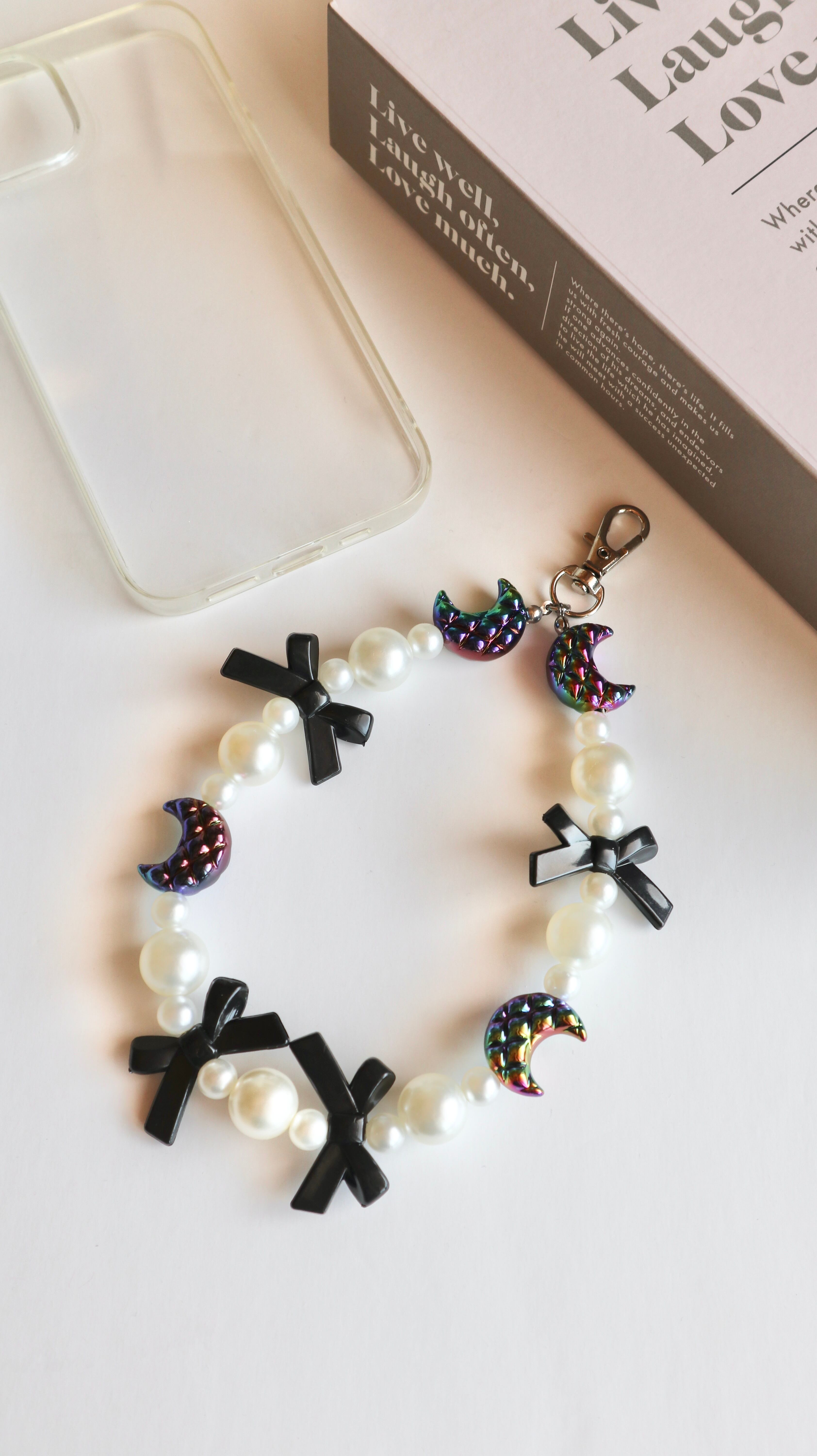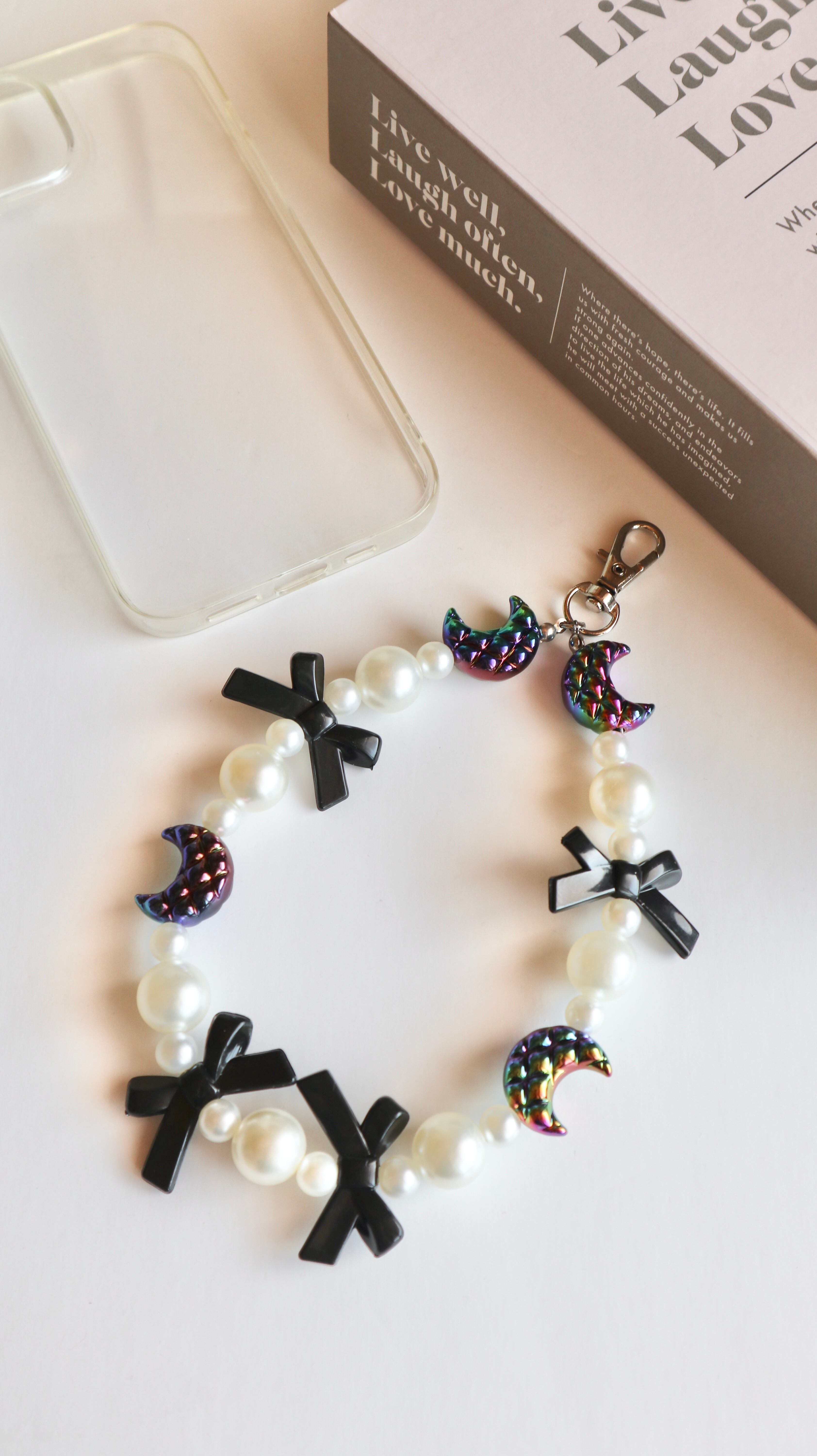 【スマホストラップ】moon ribbon /ビーズストラップ スマホストラップ ビーズアクセサリー スマホアクセサリー
