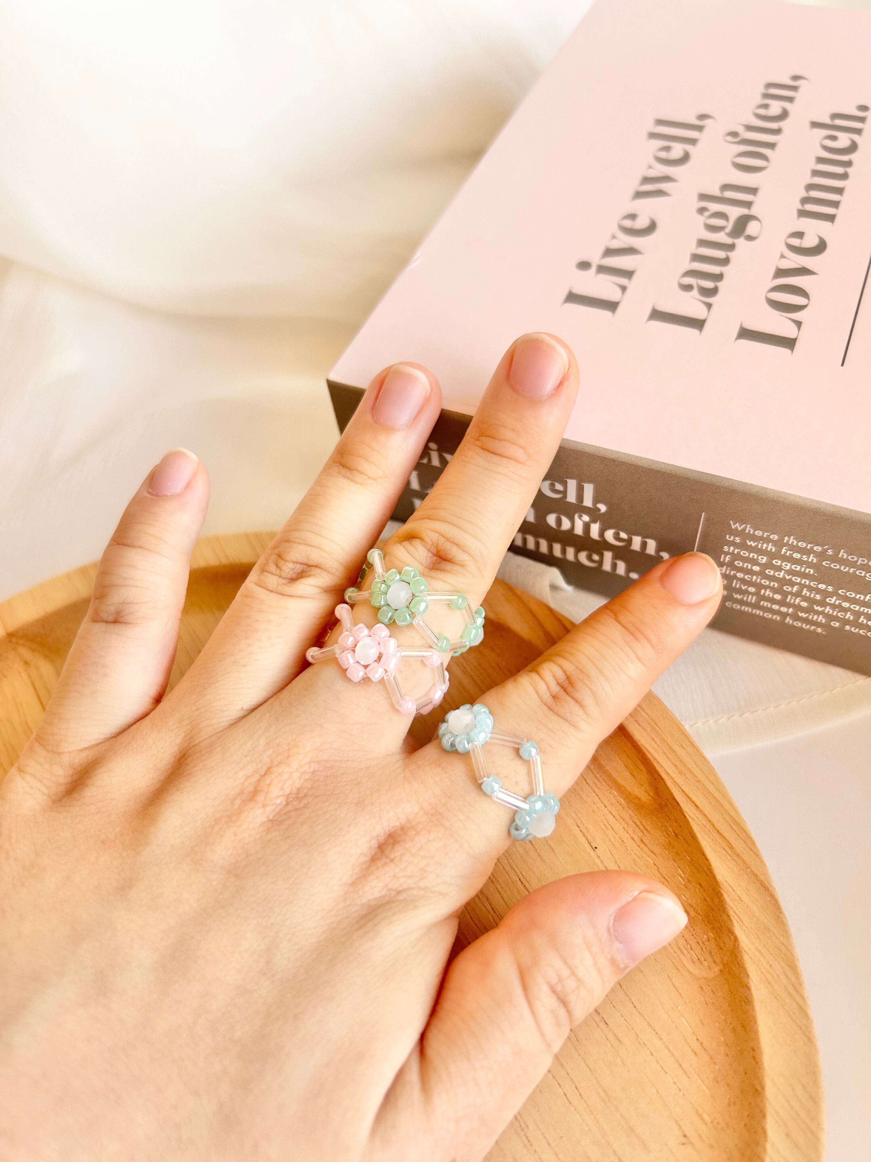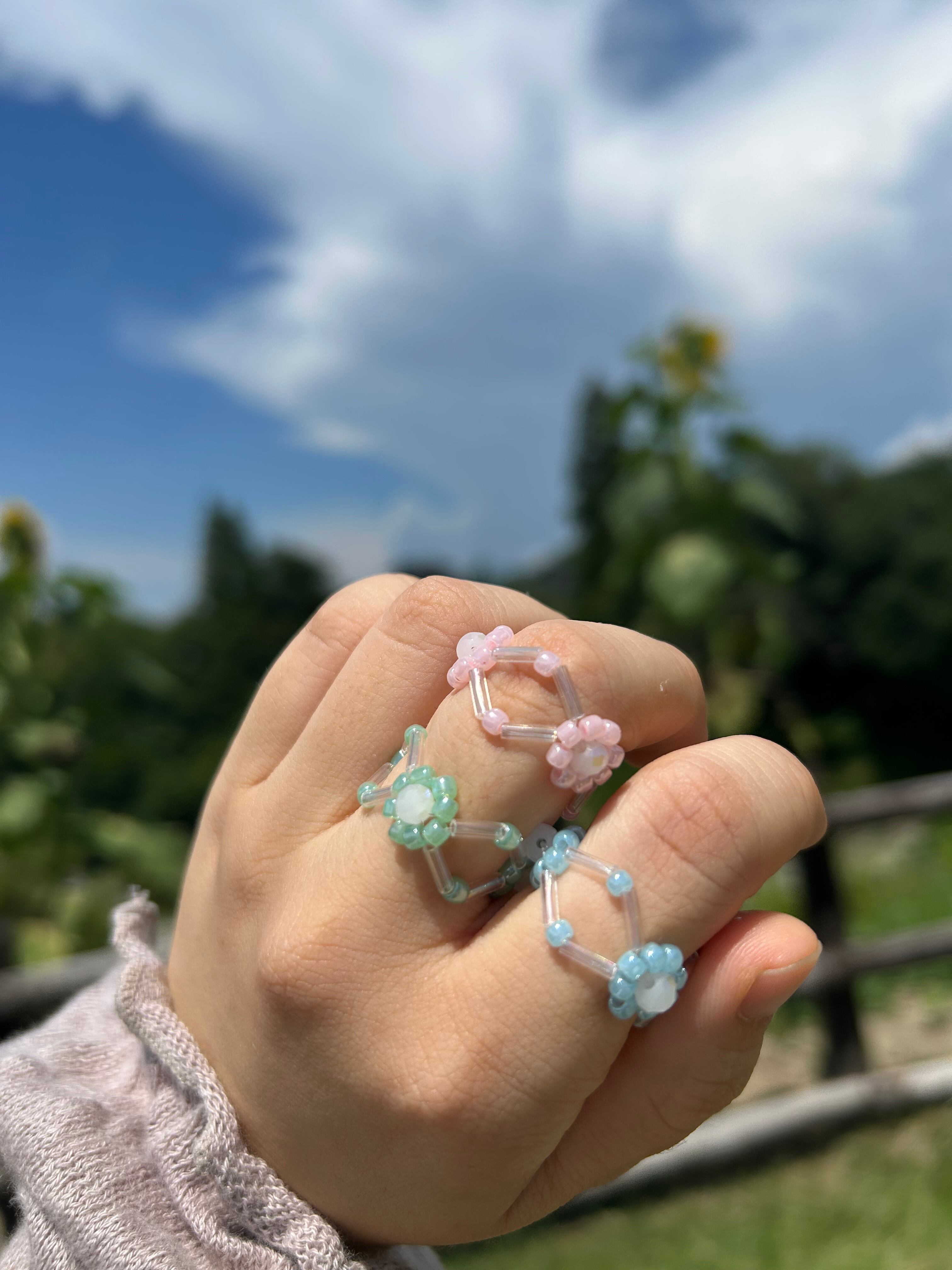 【ring】zigzag Pastel Flower ビーズリング ビーズアクセサリー シンプル
