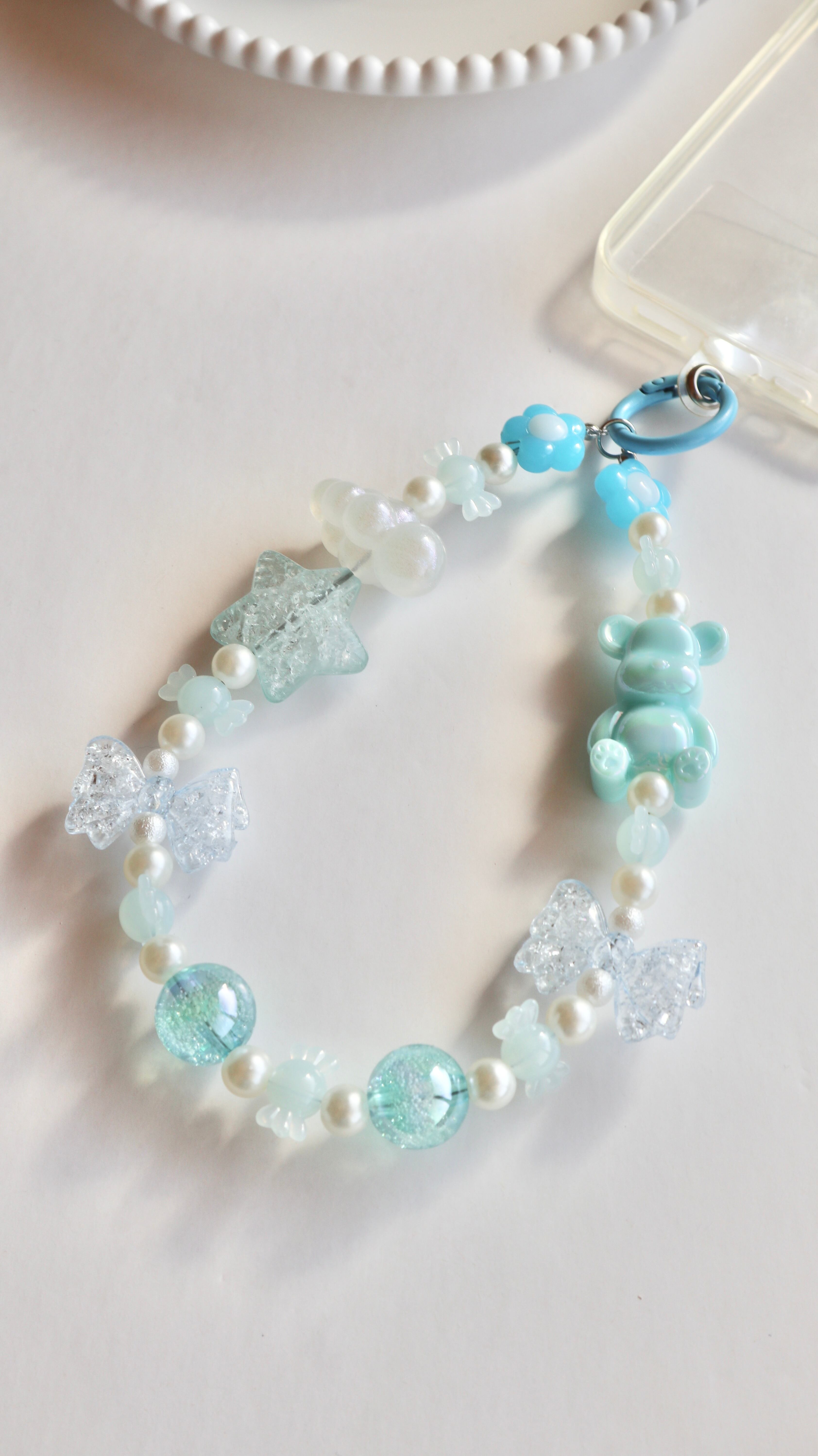 【スマホストラップ】bear スマホストラップ ストラップ ビーズ ビーズアクセサリー くま くまさん 推し活 推しカラー ハート