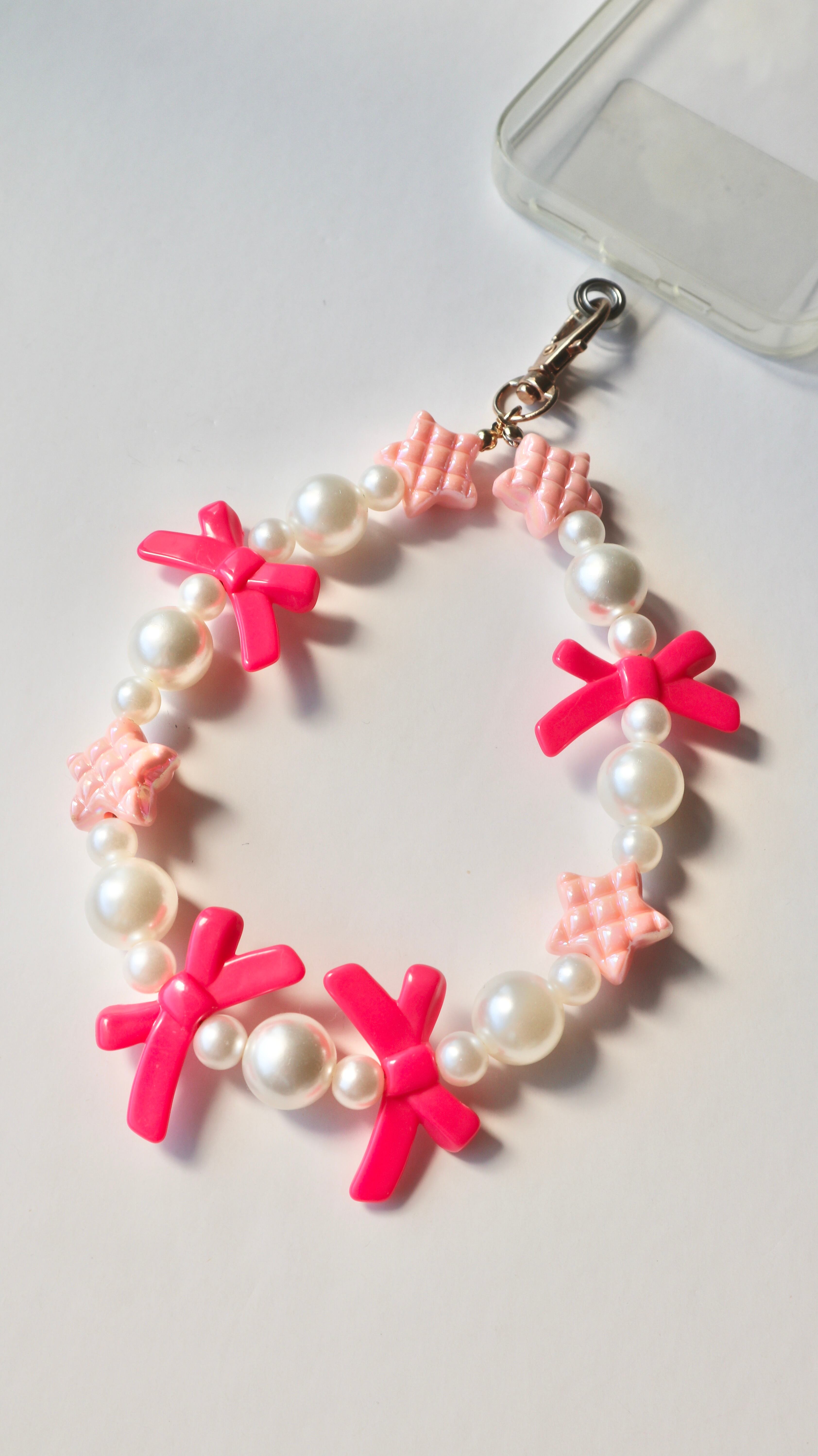 【スマホストラップ】STAR ribbon /ビーズストラップ スマホストラップ ビーズアクセサリー スマホアクセサリー