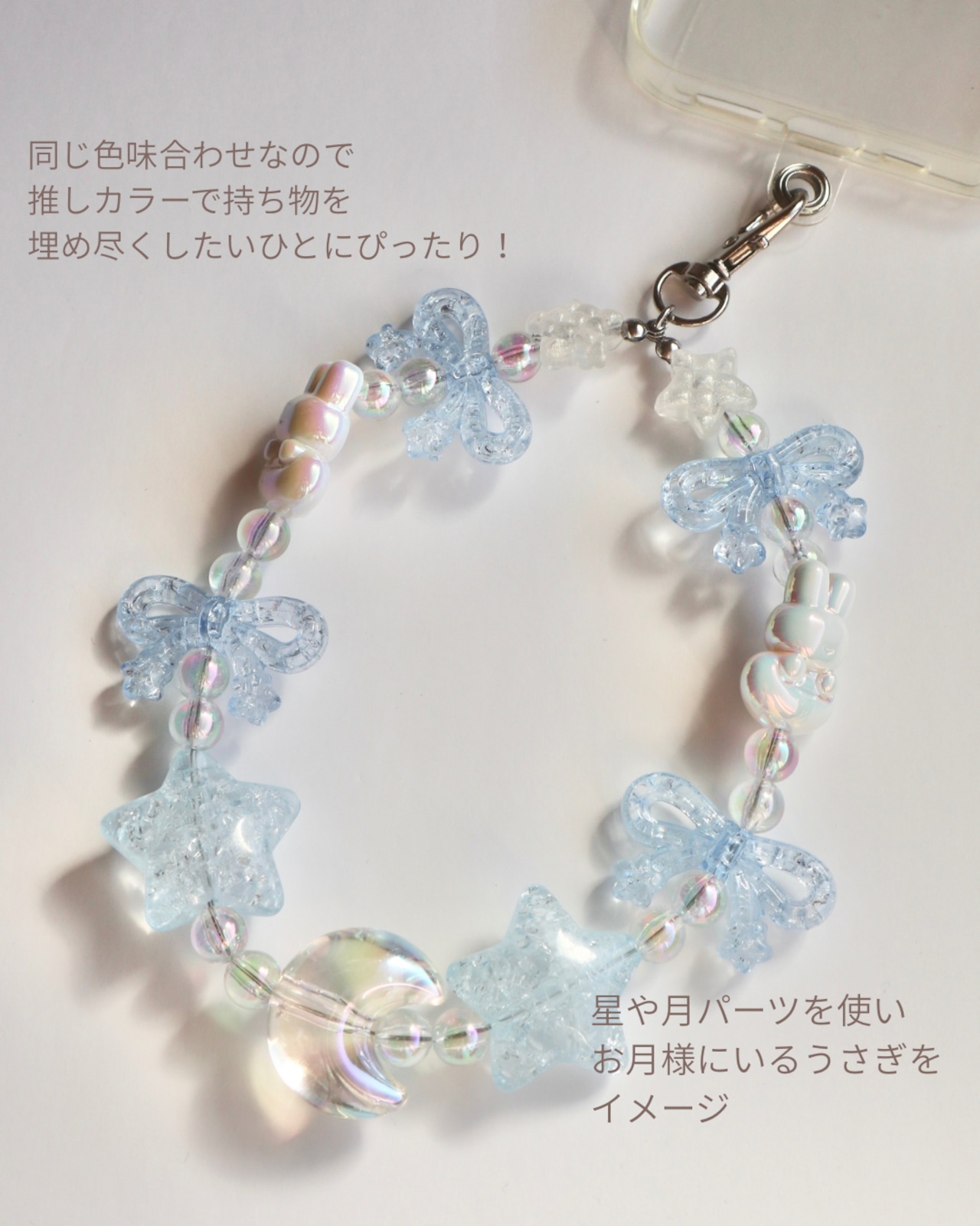 【スマホストラップ】 Rabbit moon/ビーズストラップ スマホストラップ ビーズアクセサリー スマホアクセサリー  推し活 推しカラー