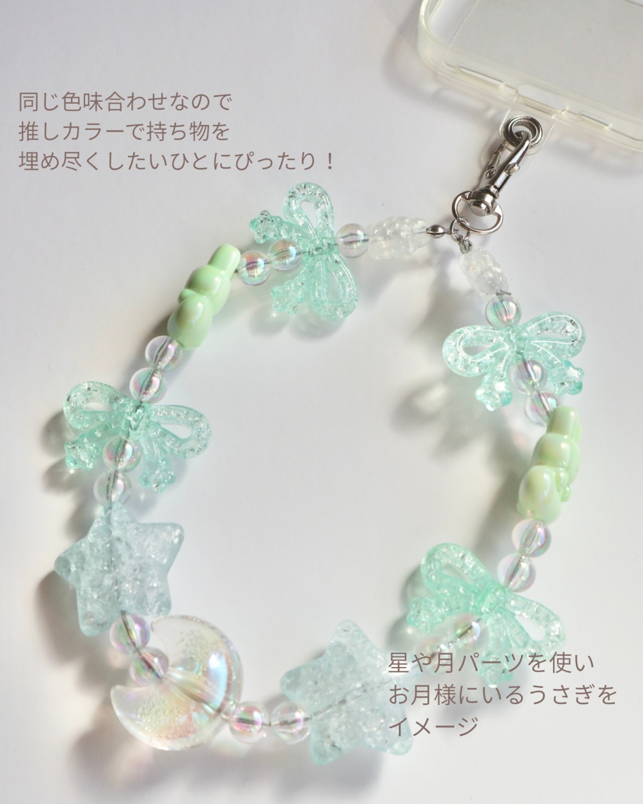 【スマホストラップ】 Rabbit moon/ビーズストラップ スマホストラップ ビーズアクセサリー スマホアクセサリー 推し活 推しカラー