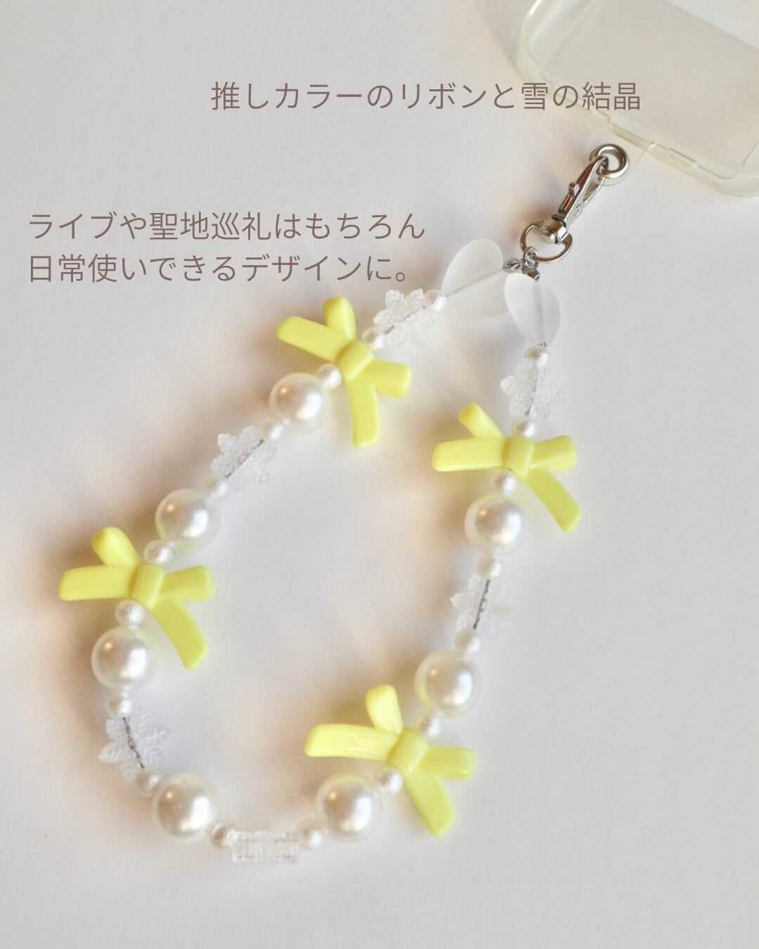 【スマホストラップ】 Snowribbon /ビーズストラップ スマホストラップ ビーズアクセサリー スマホアクセサリー 雪の結晶 推しカラー
