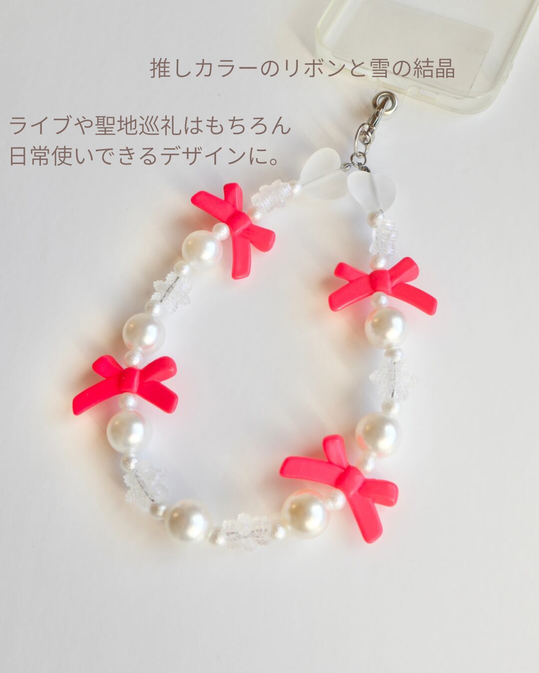 【スマホストラップ】 Snowribbon /ビーズストラップ スマホストラップ ビーズアクセサリー スマホアクセサリー 雪の結晶 推しカラー