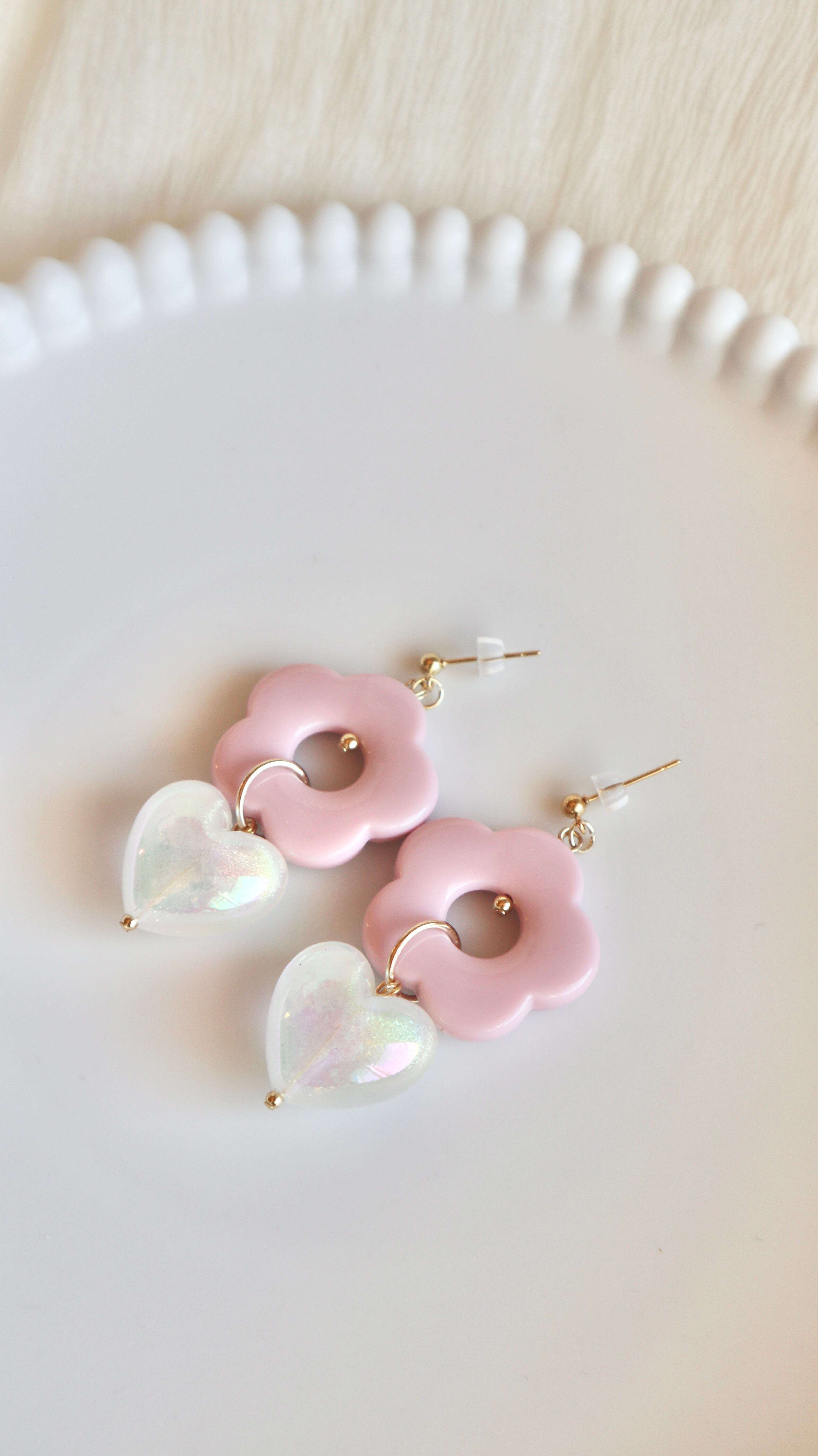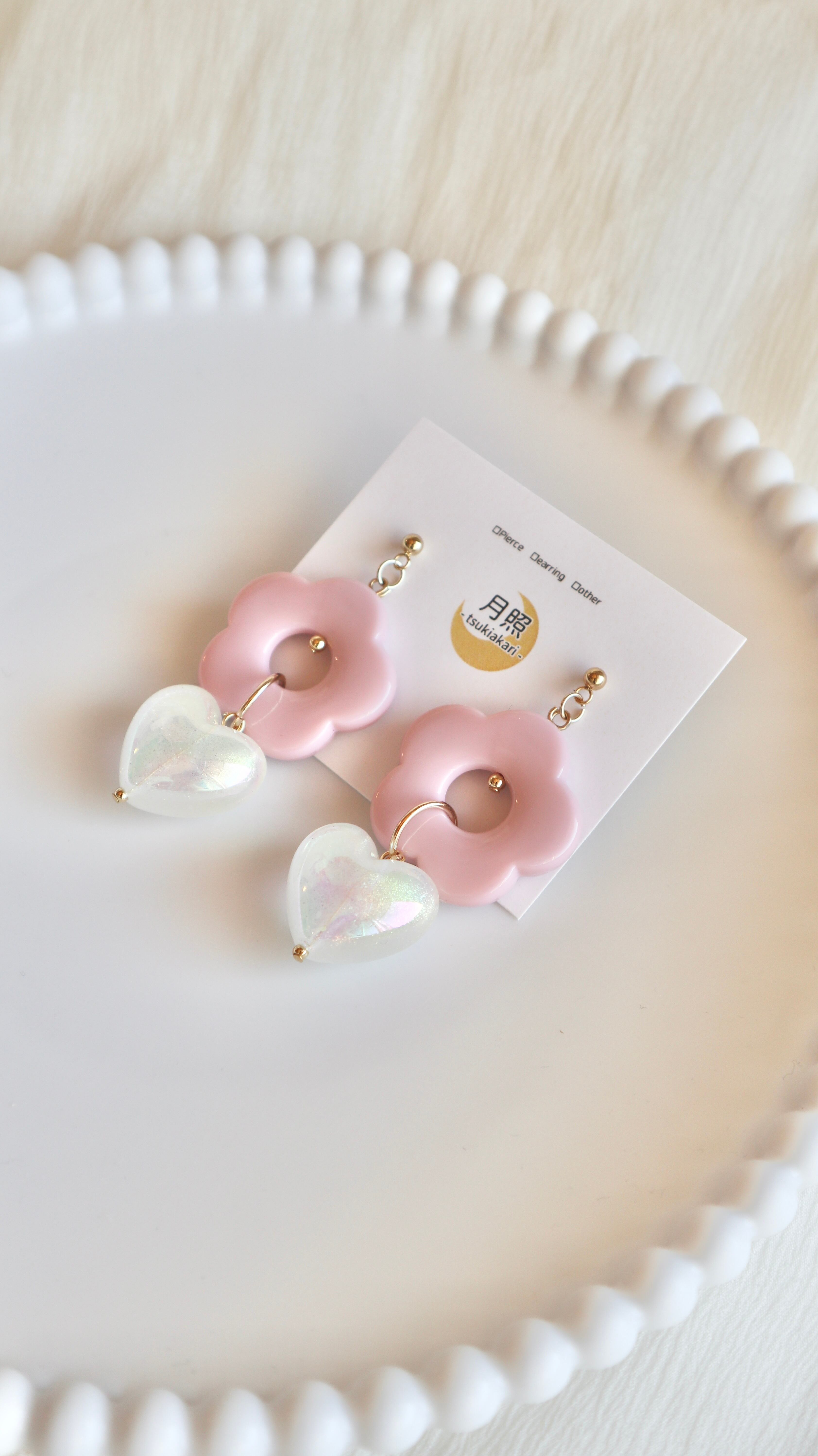 【pierce/earring】Flower×Heart /ハート お花 ピンク イヤリング ピアス