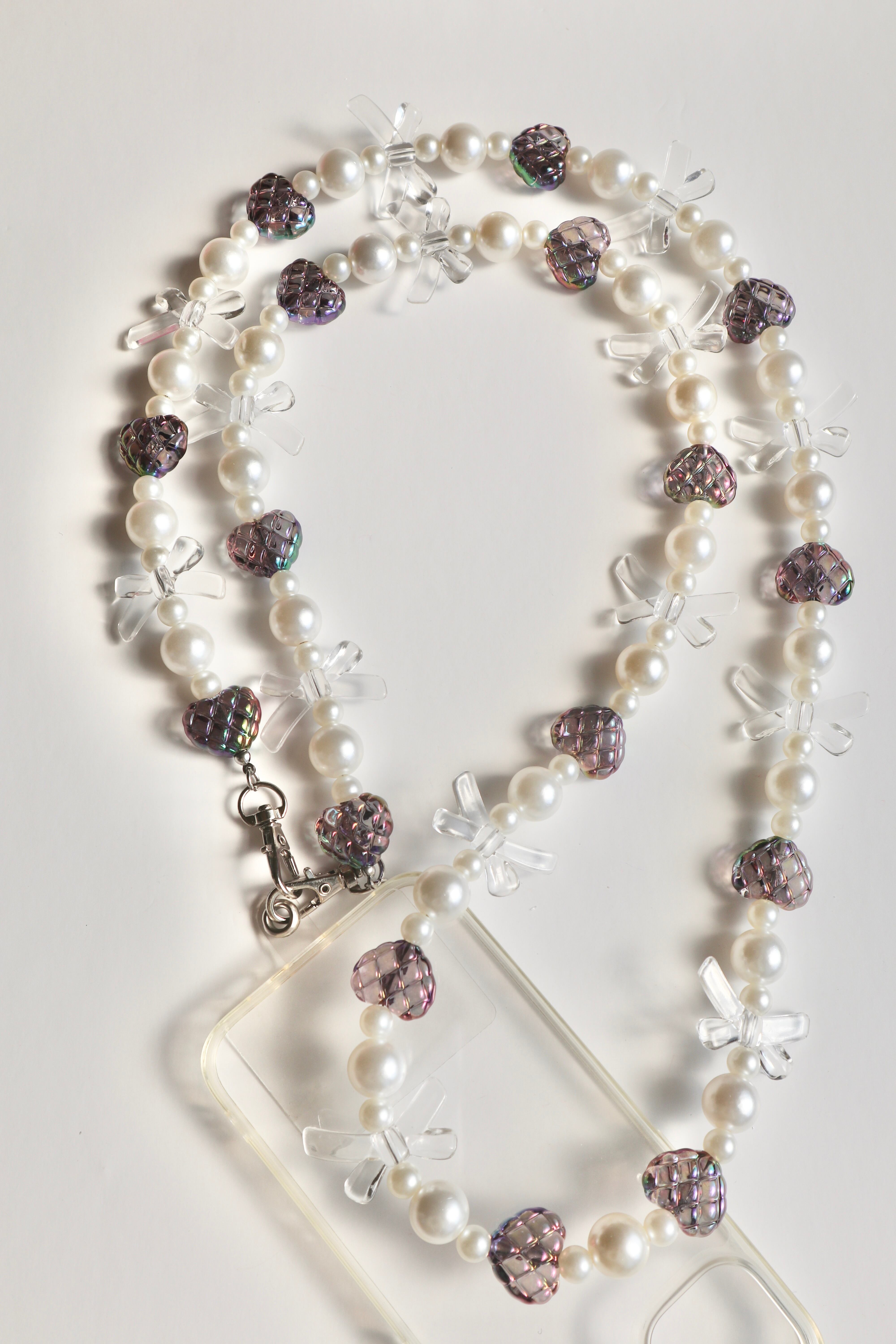 【スマホショルダー】Heart ribbon /ビーズショルダー スマホショルダー ショルダーストラップ ハート リボン 推しカラー 大人かわいい 黒