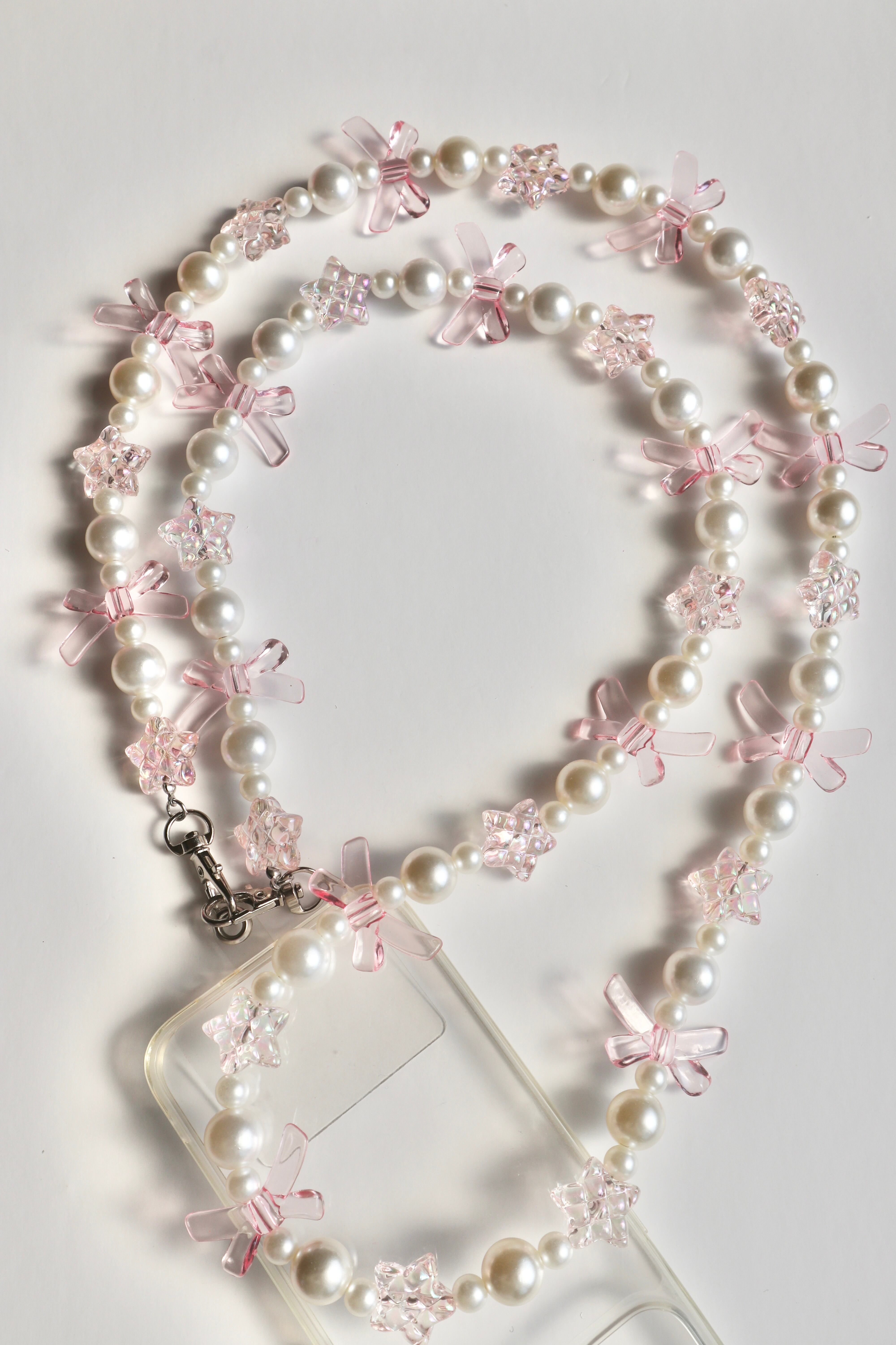 【スマホショルダー】STAR ribbon /ビーズショルダー スマホショルダー ショルダーストラップ スター 星 リボン 推しカラー 大人かわいい ピンク