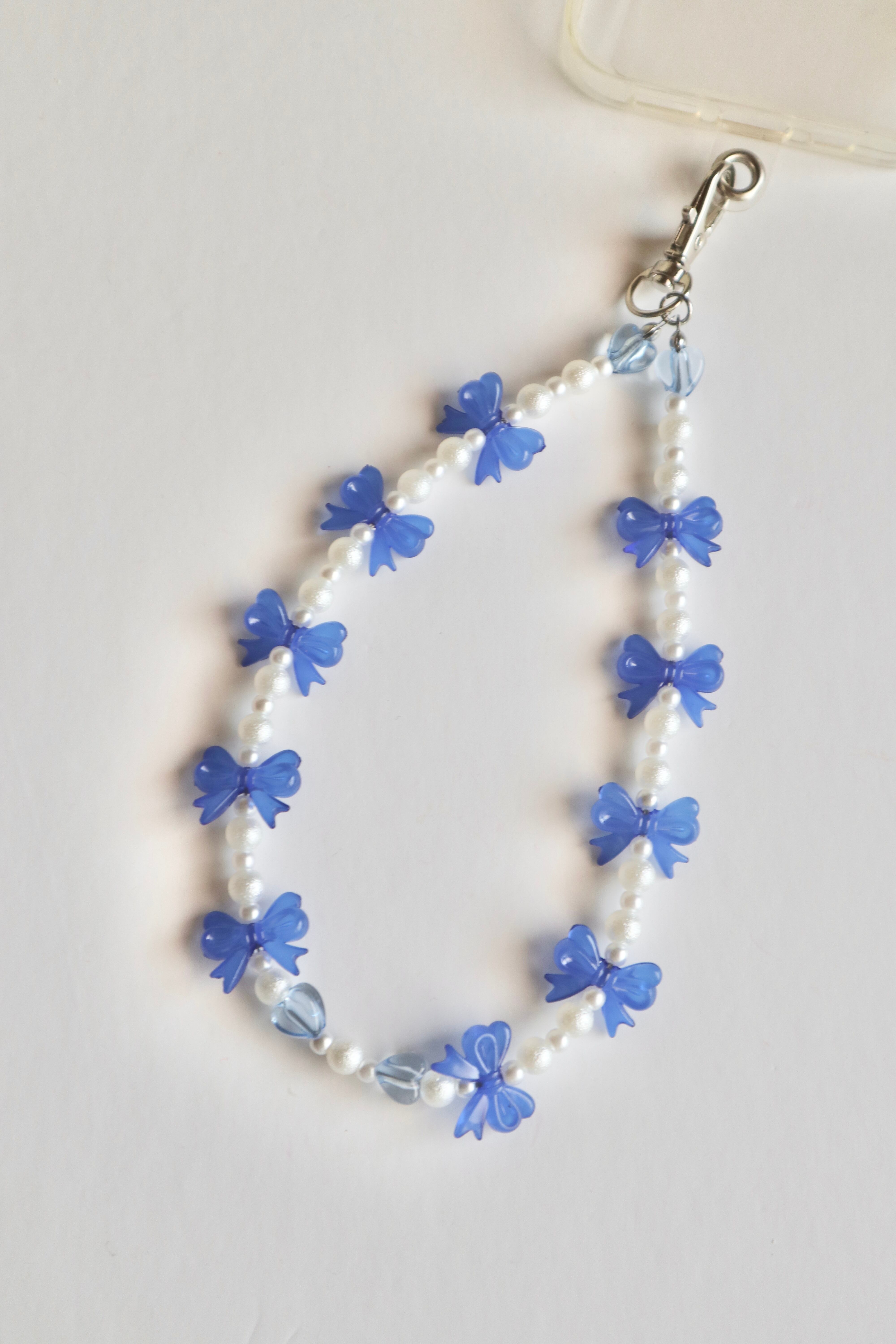 【スマホストラップ】ribbon /ビーズストラップ スマホストラップ ハンドストラップ 推しカラー リボン ブルー サファイアブルー ロイヤルブルー