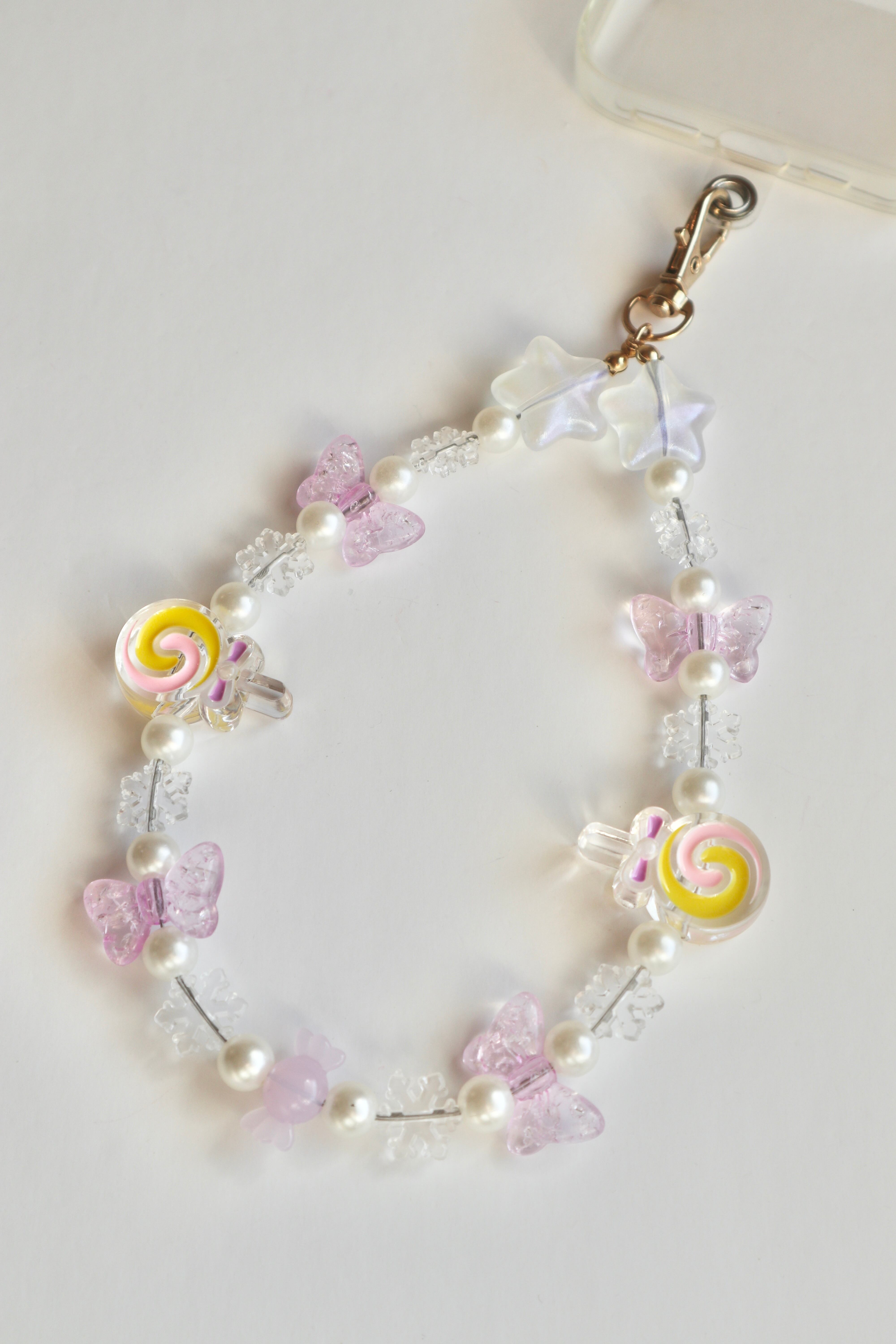 【スマホストラップ】Candy /ビーズストラップ スマホストラップ ハンドストラップ 推しカラー あめだま キャンディ 雪の結晶 パープル イエロー
