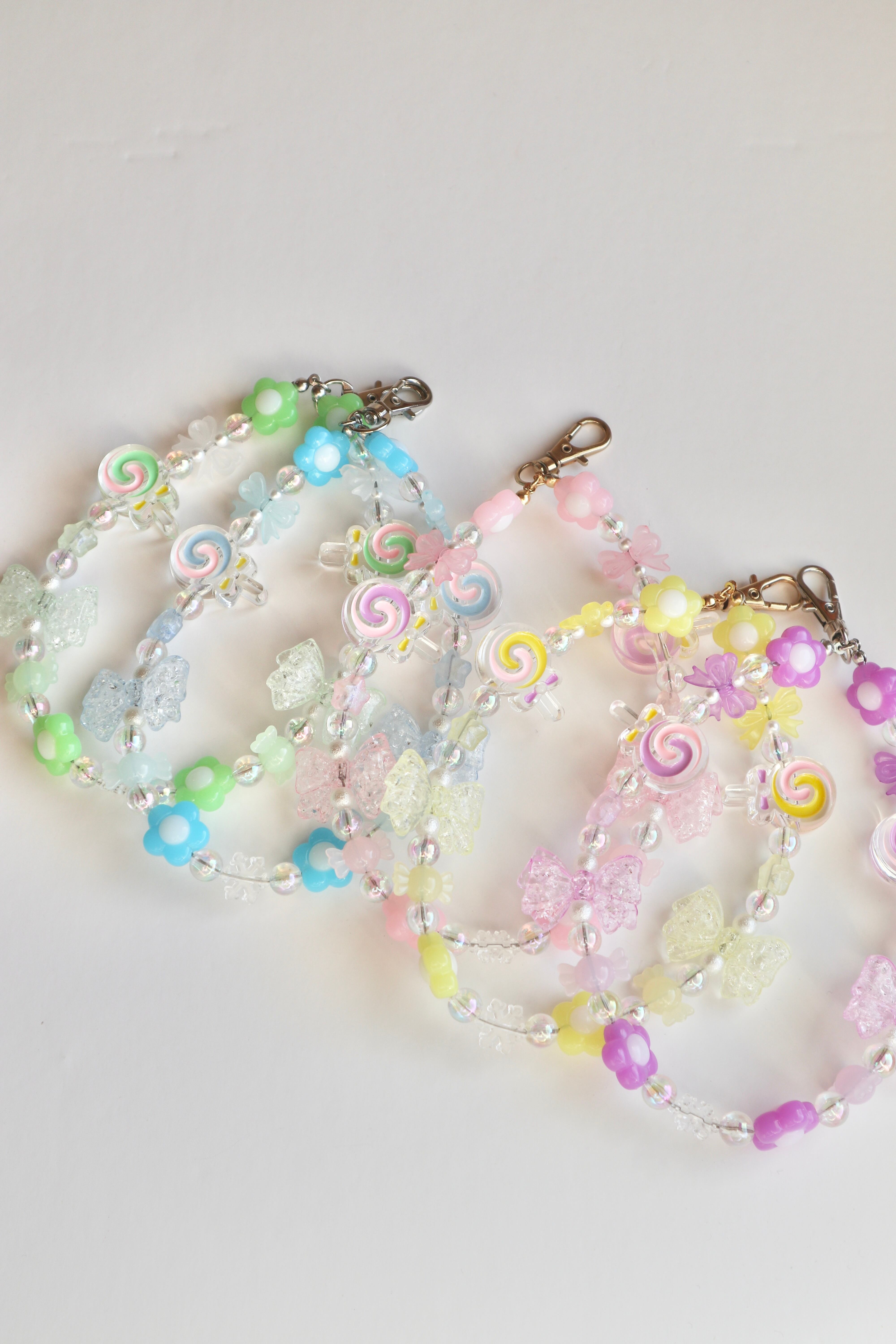 【スマホストラップ】Candy /ビーズストラップ スマホストラップ ハンドストラップ 推しカラー あめだま キャンディ 雪の結晶 リボン イエロー 黄色