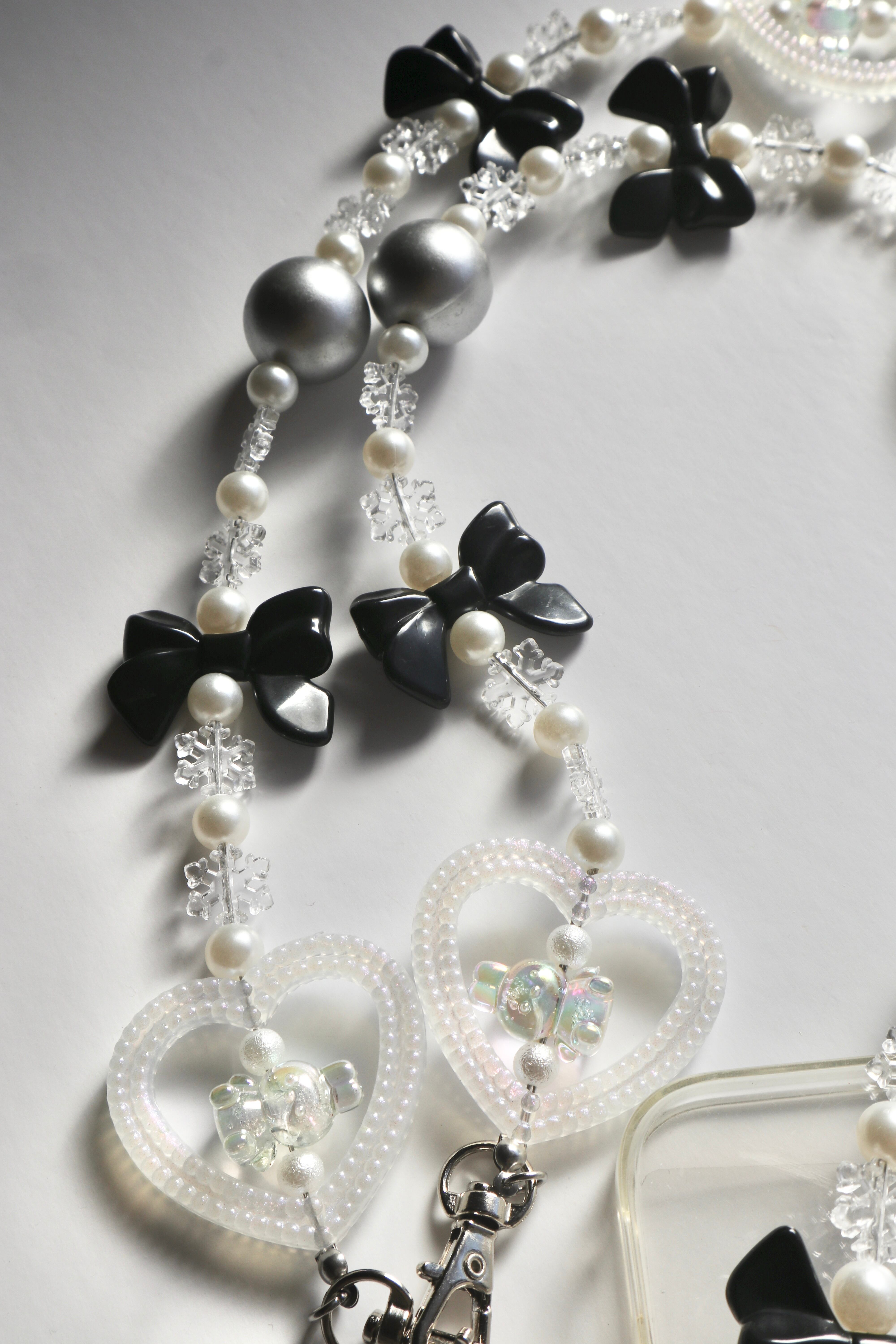 【スマホショルダー】ornament /ビーズショルダー スマホショルダー ショルダーストラップ リボン 雪の結晶 リボン ハート うさぎ 白 黒