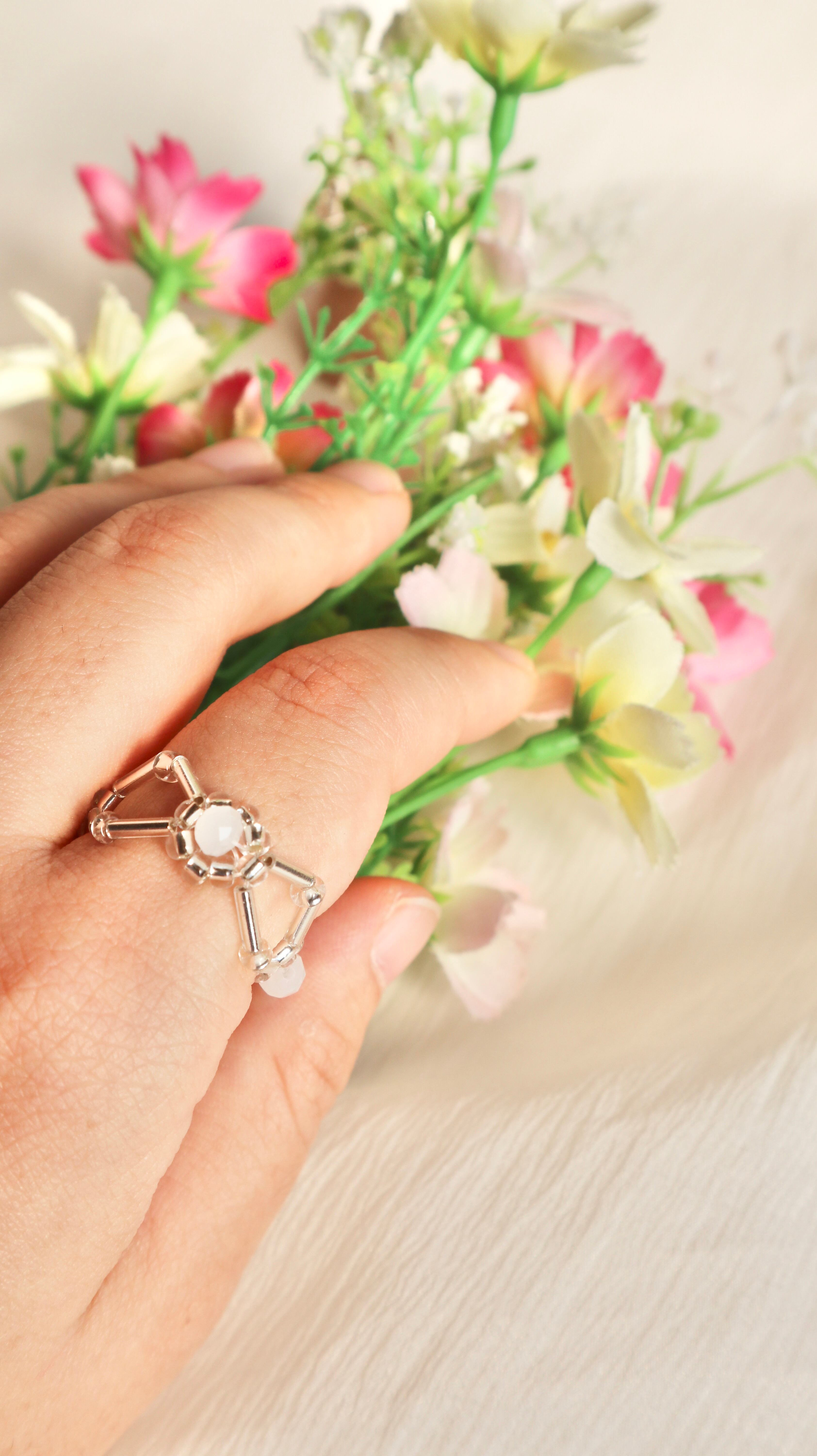 【福袋】お友達やご家族でシェアできる お花ビーズリングSET / ビーズアクセサリー ビーズリング