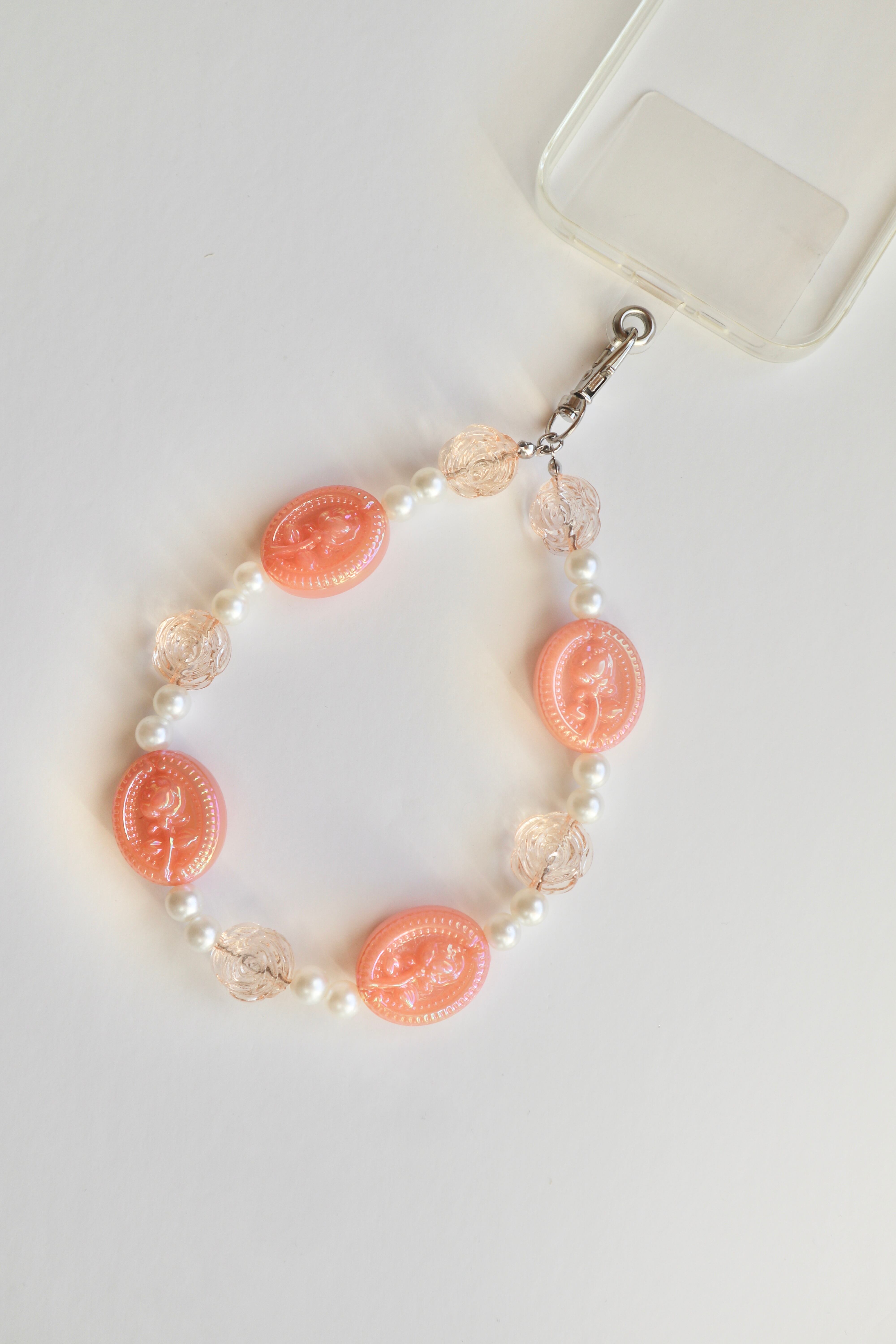 【スマホストラップ】drops /ビーズストラップ スマホストラップ ハンドストラップ 推しカラー あめだま drops バラ オレンジ