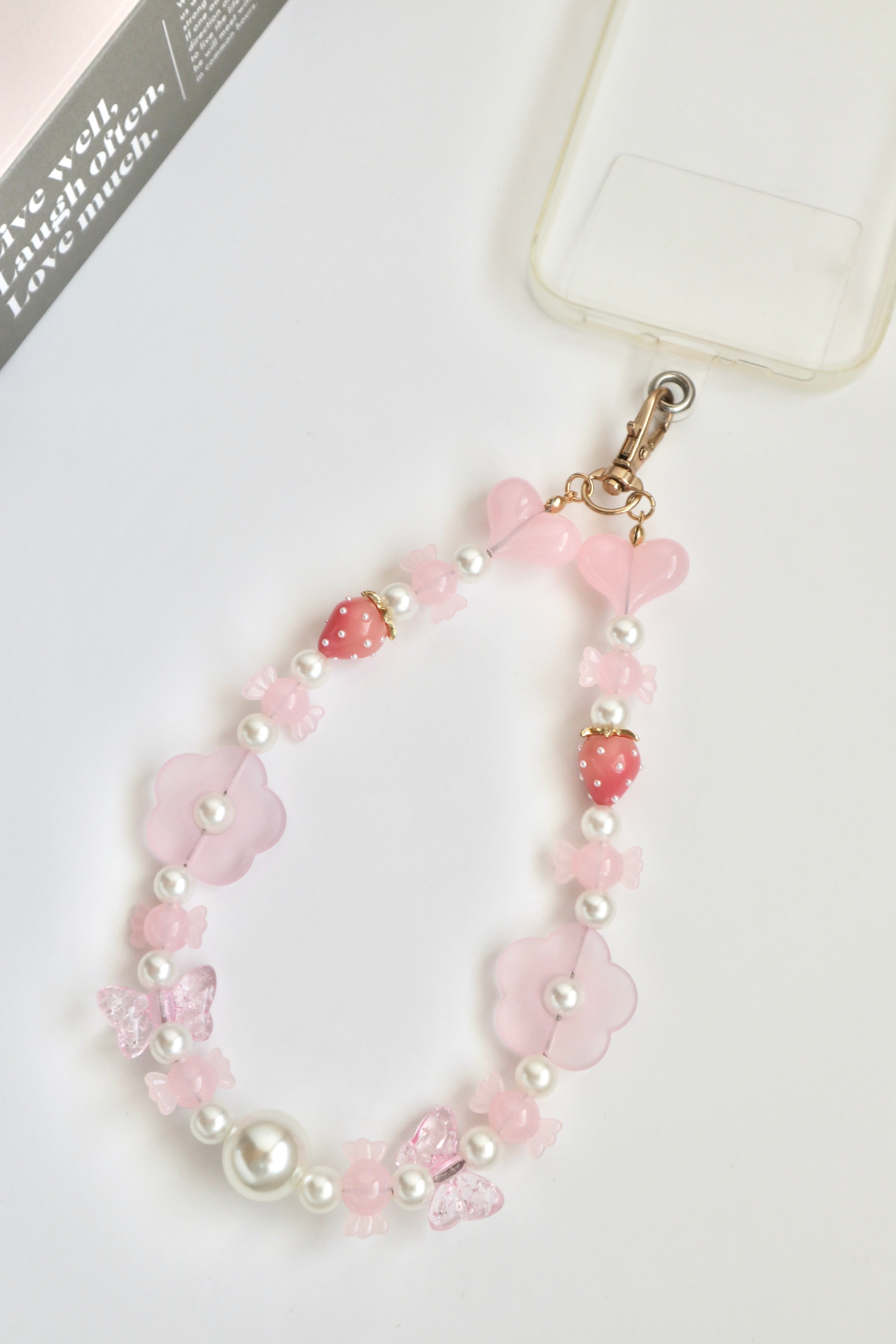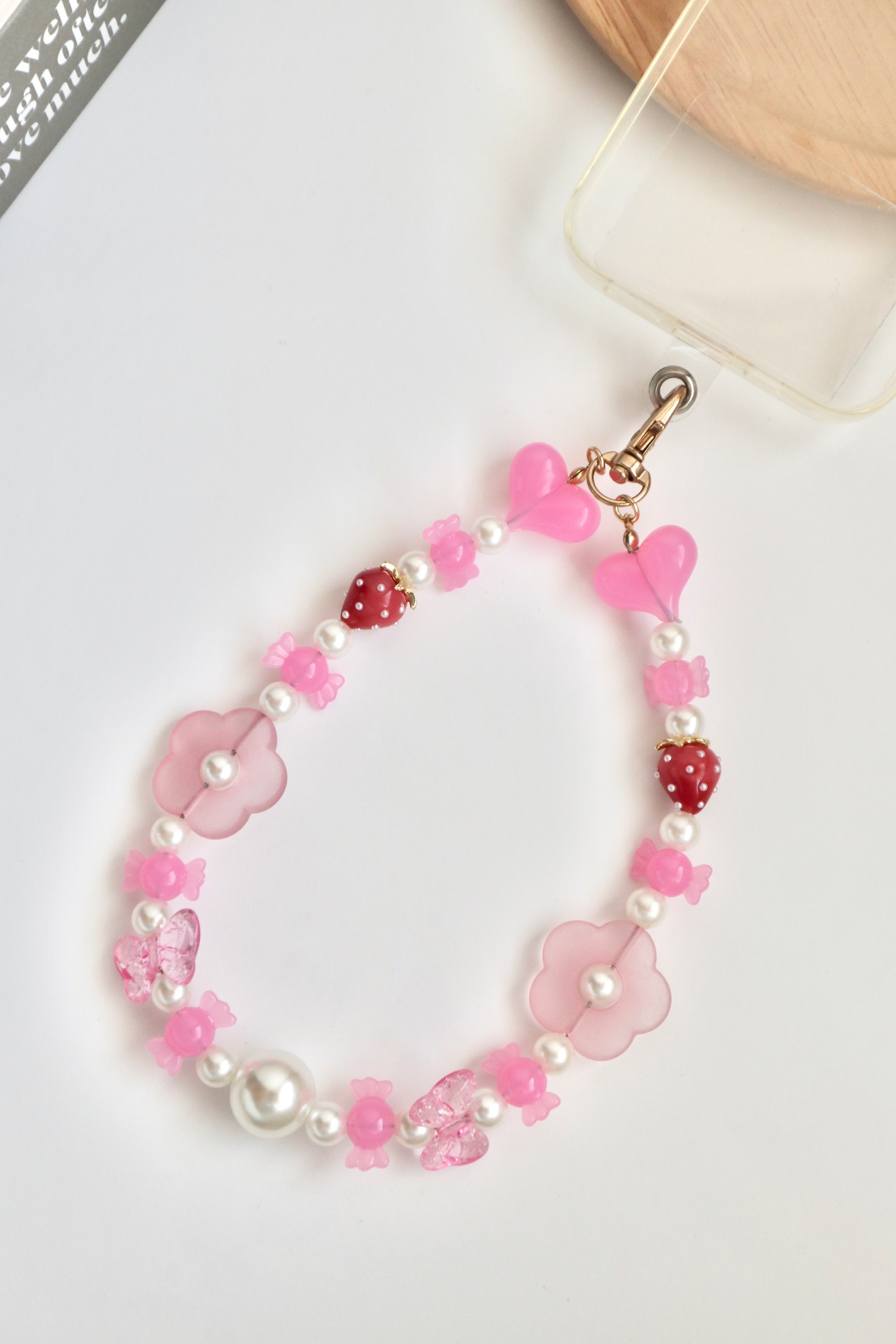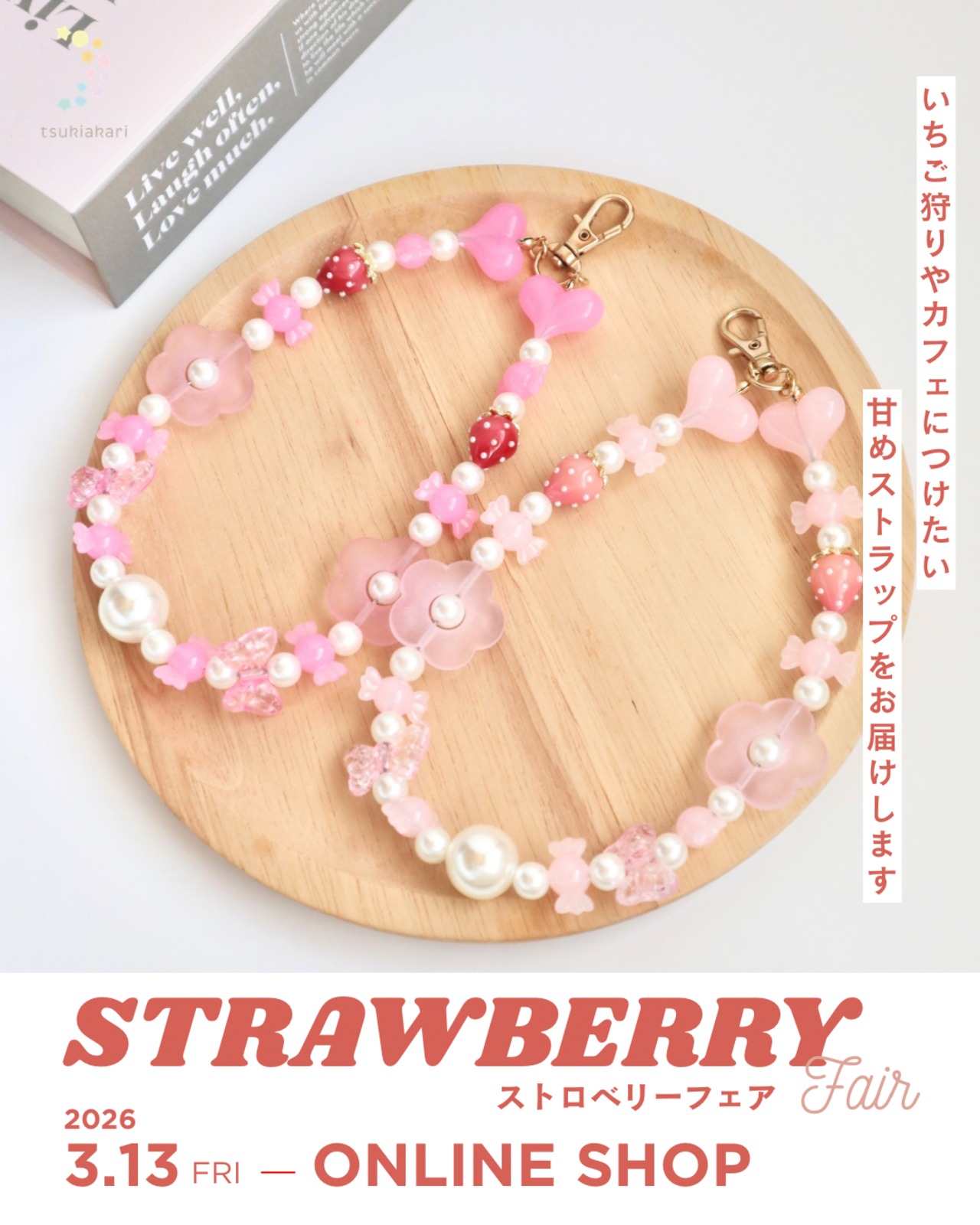 【スマホストラップ】strawberry / スマホストラップ ストラップ ビーズストラップ リボン ハート 推し活 推しカラー
