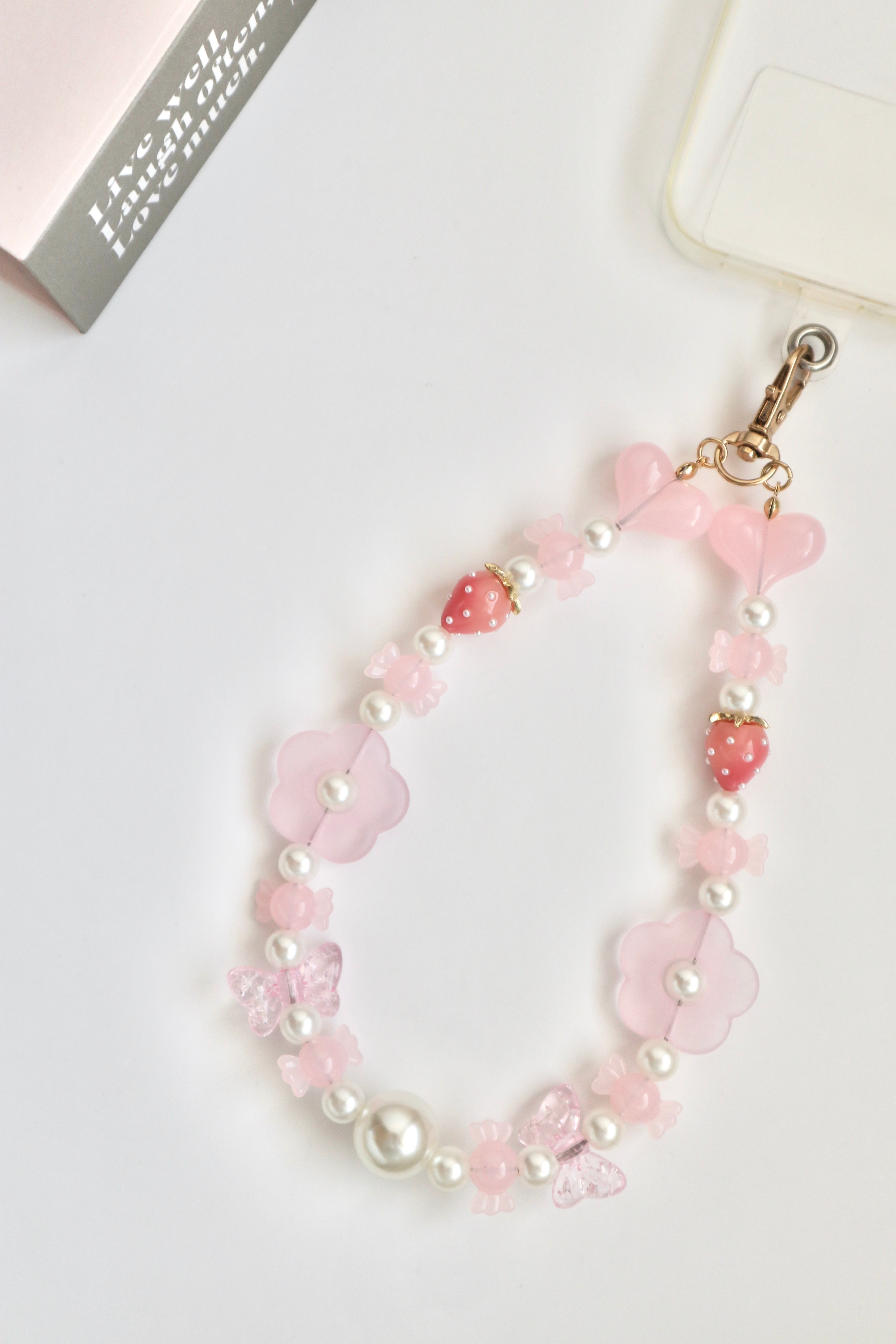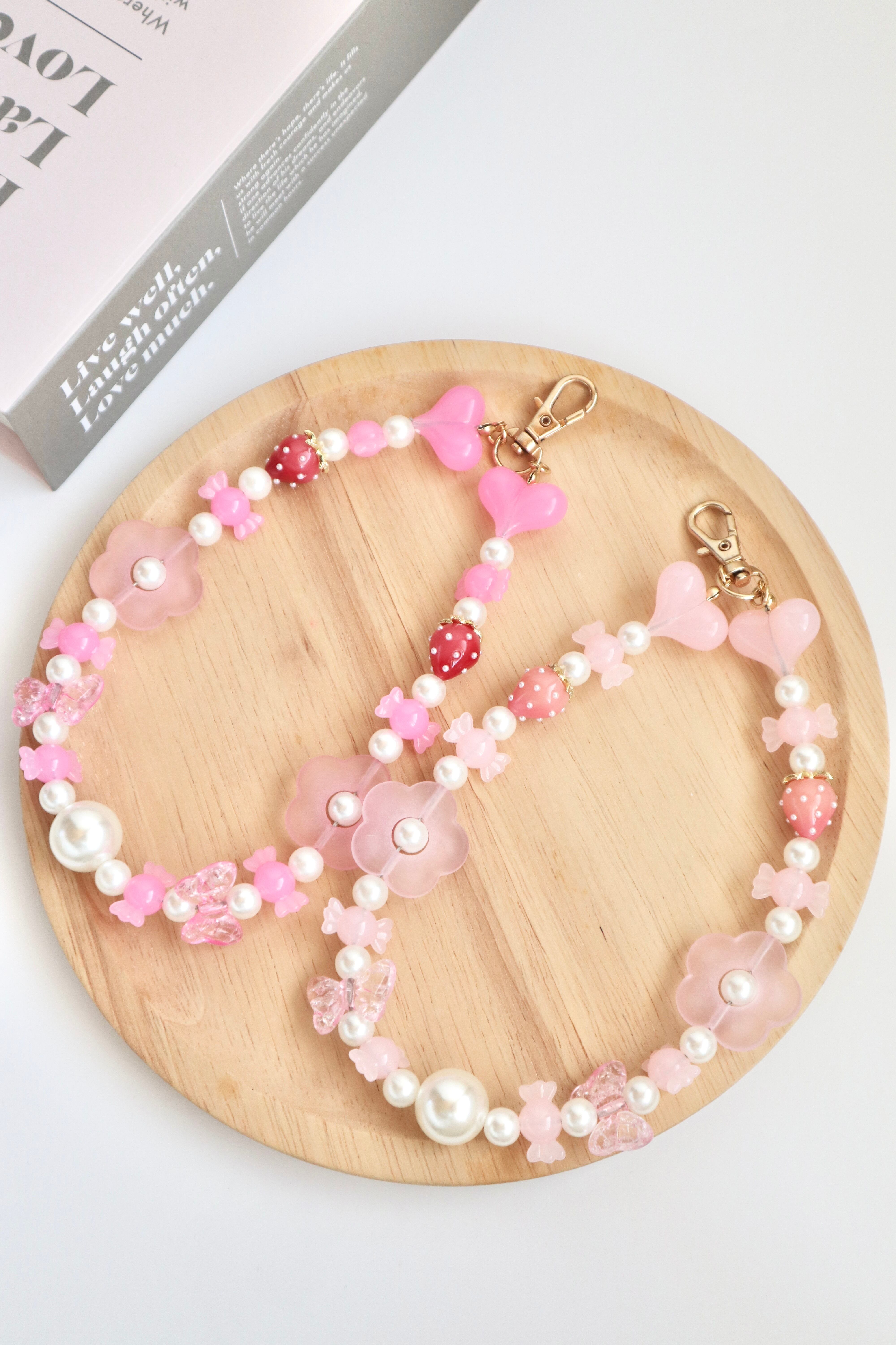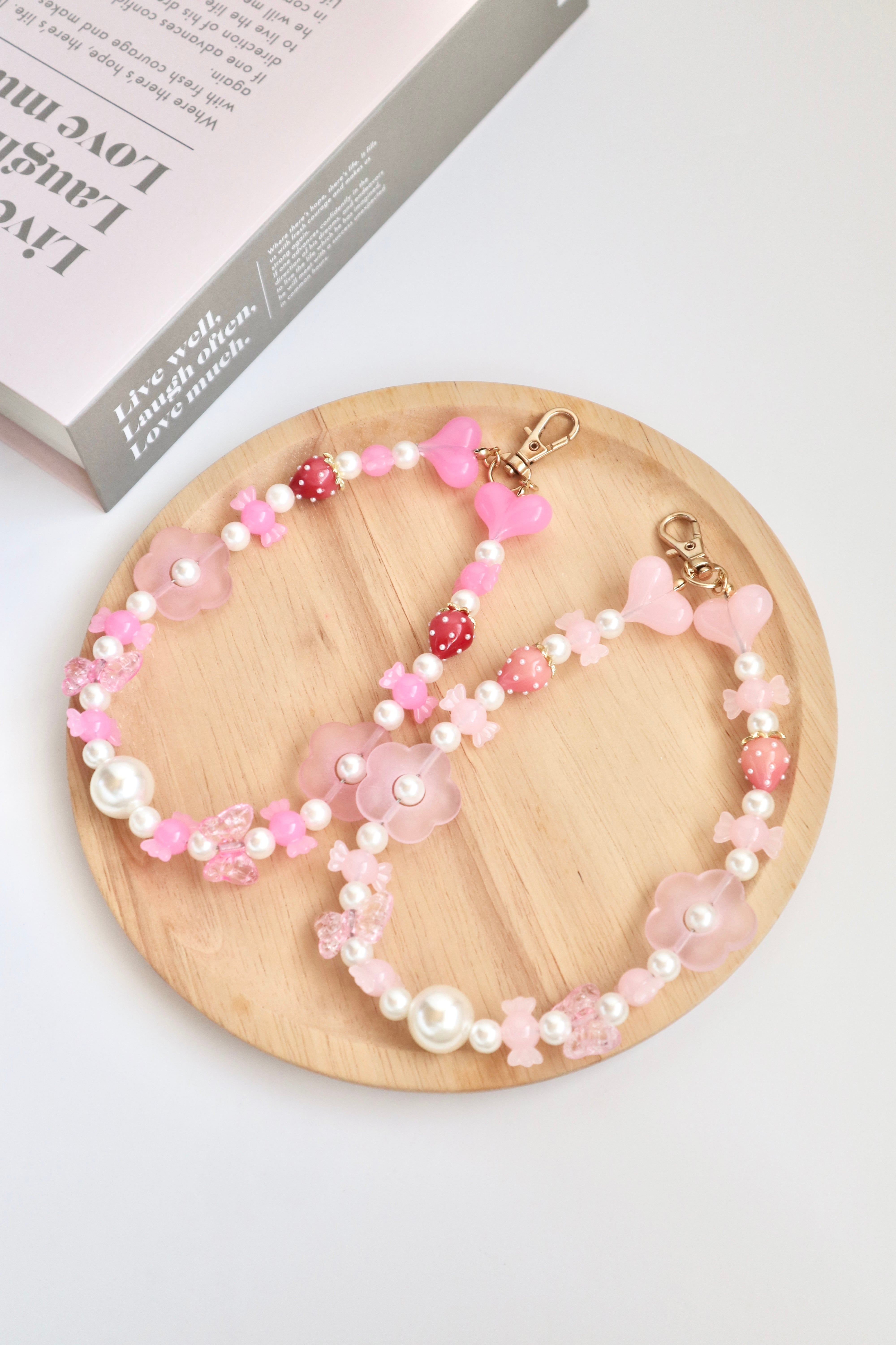 【スマホストラップ】strawberry / スマホストラップ ストラップ ビーズストラップ リボン ハート 推し活 推しカラー