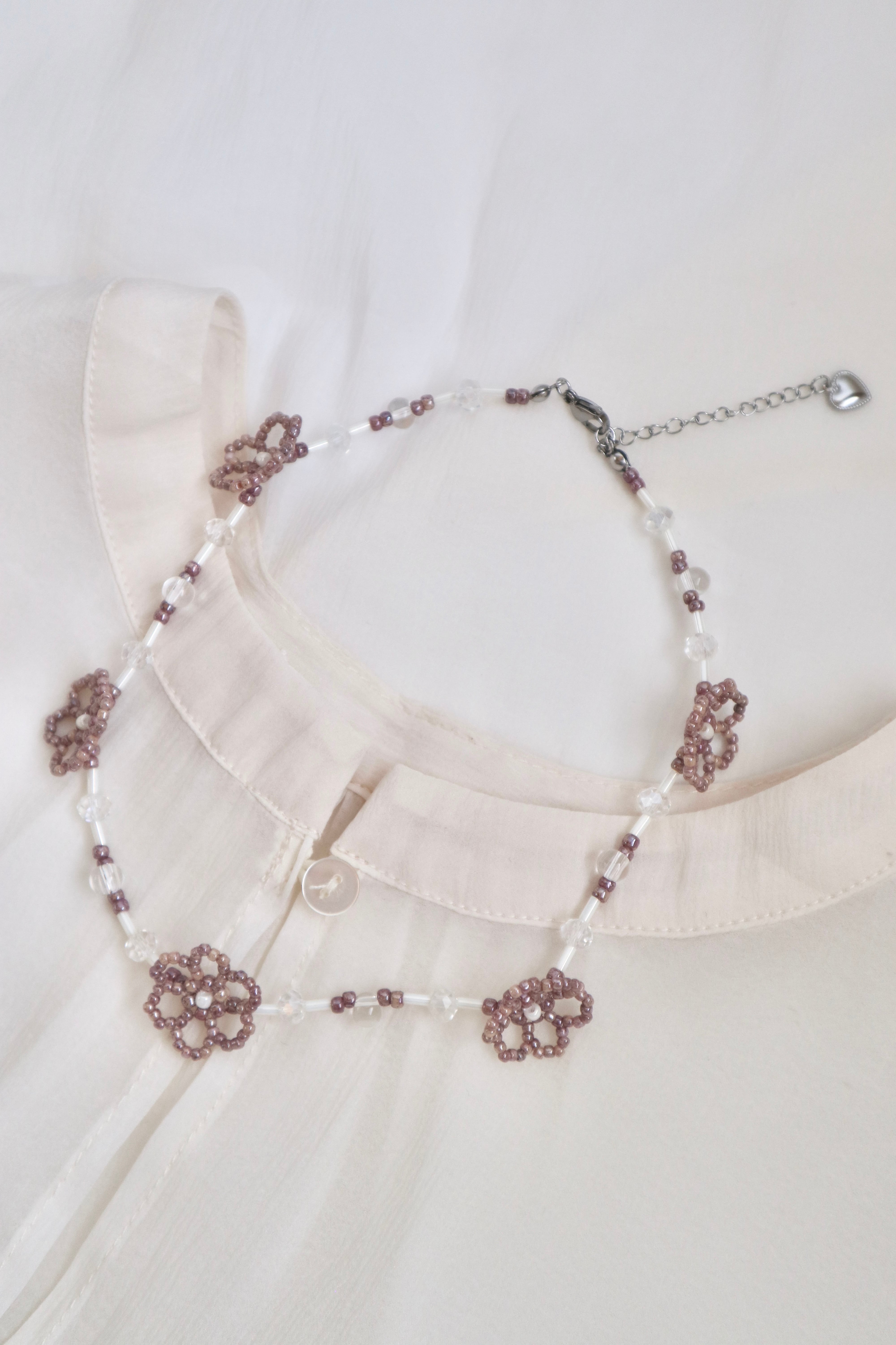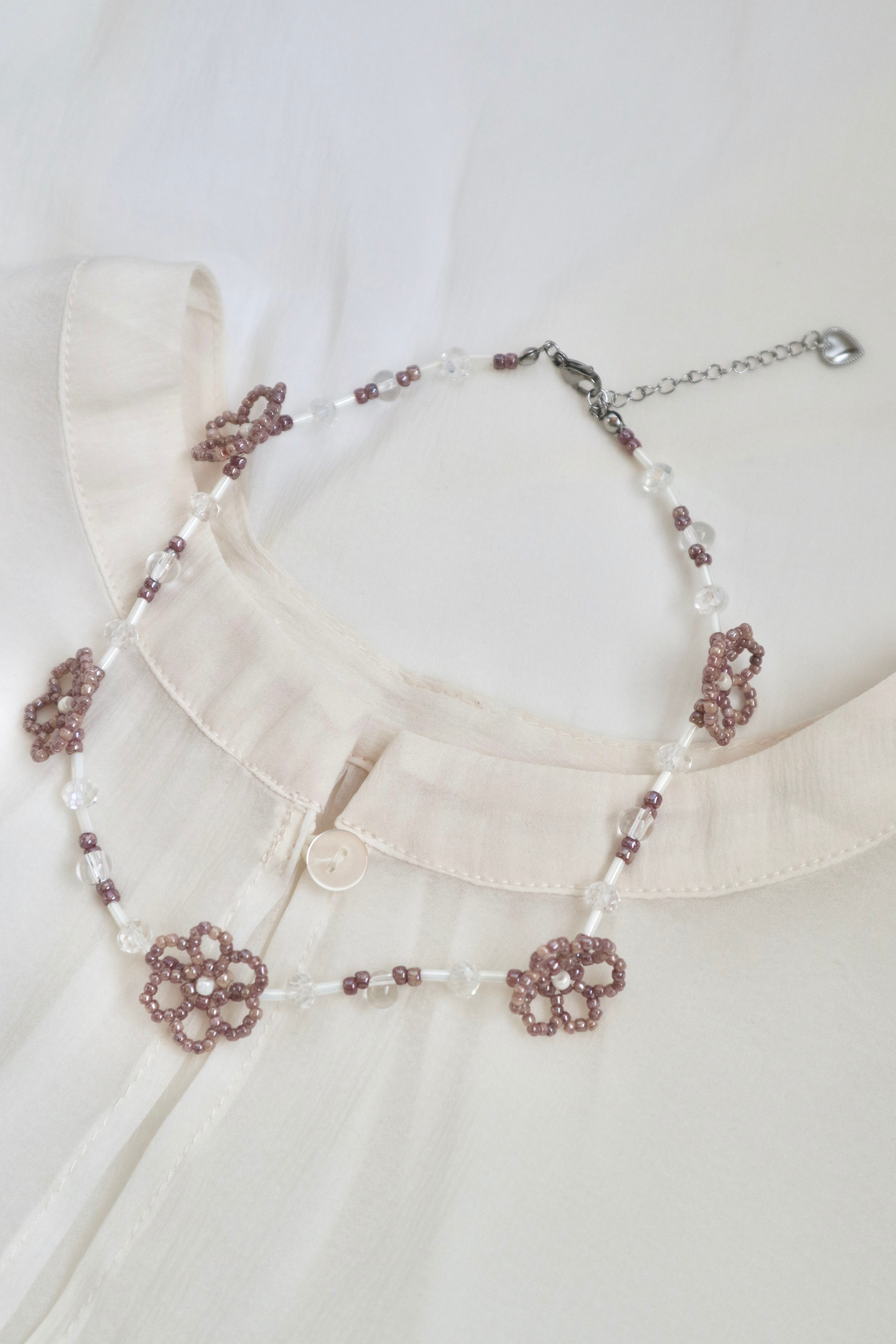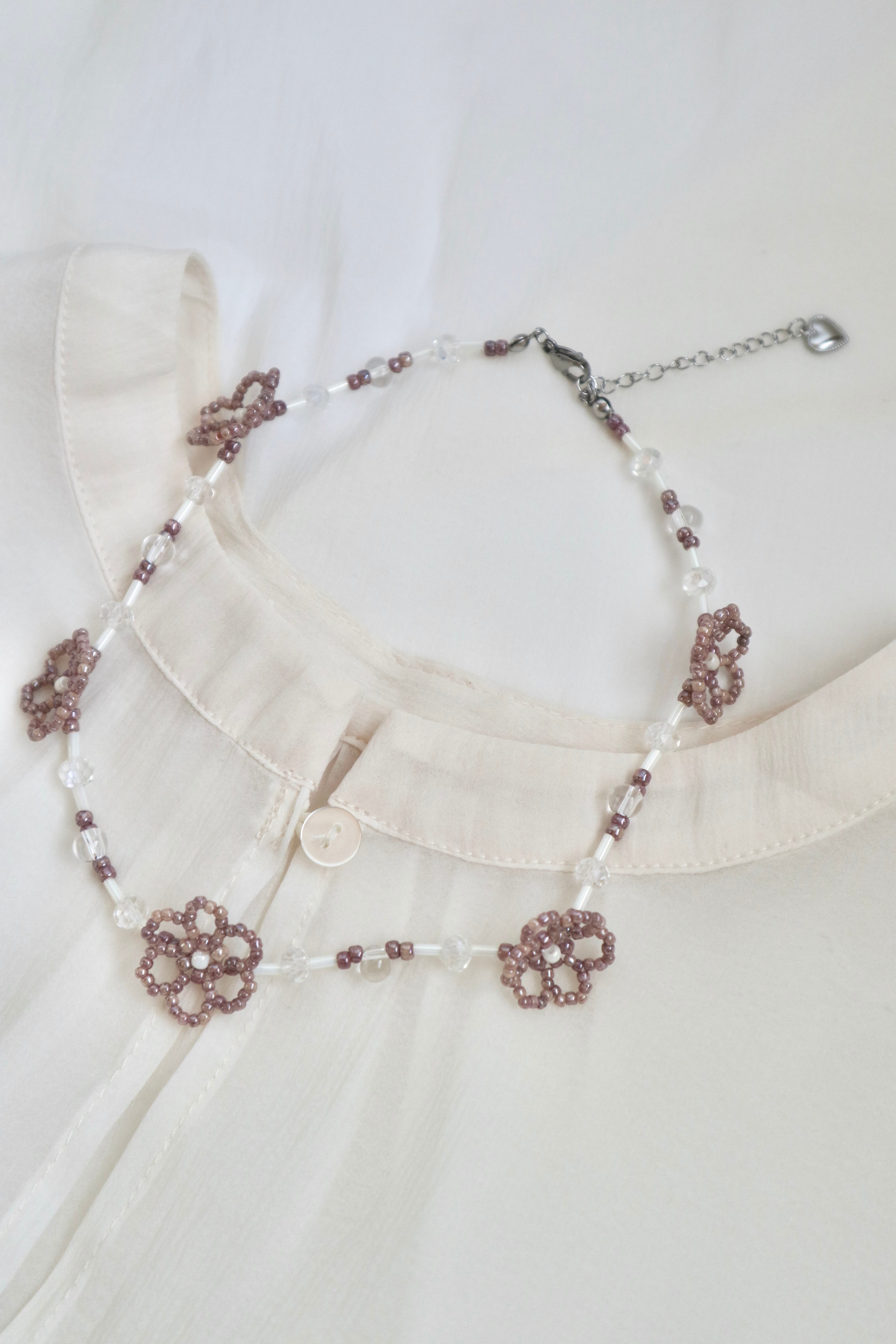【necklace】満開Flower/ビーズチョーカー ビーズネックレス お花 ステンレス 金属アレルギー対応