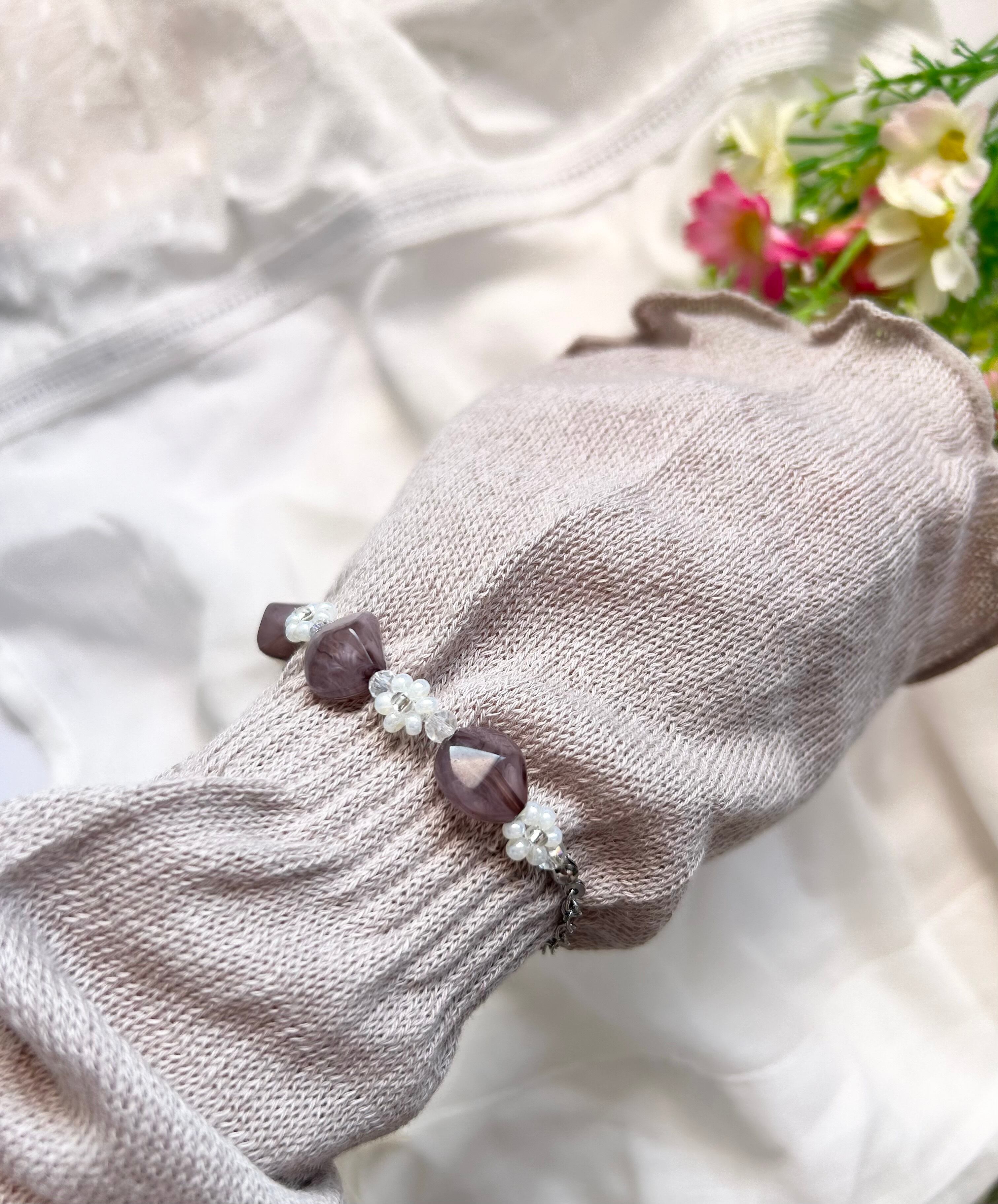 お花編みビーズの組み合わせブレスレット☺︎