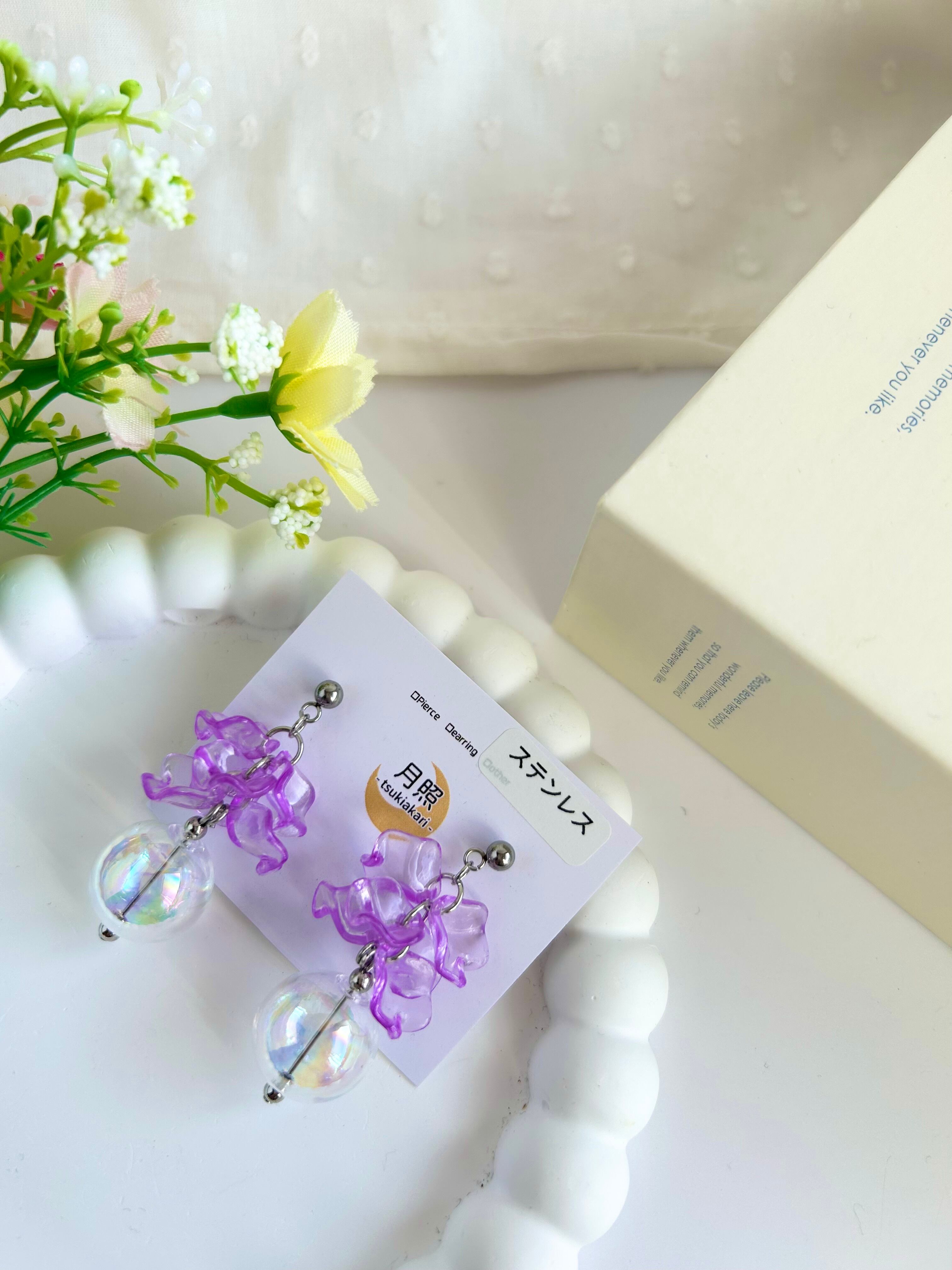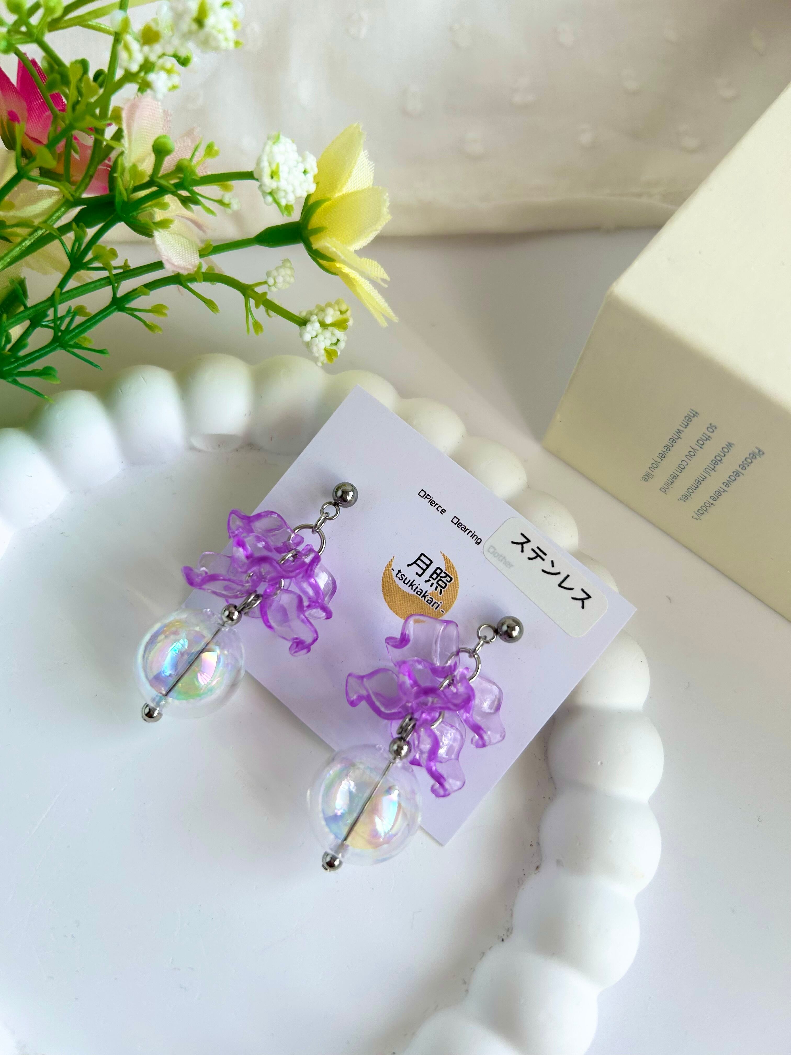 【ピアス/イヤリング】MINI bubble/ ピアス イヤリング ガラス お花 推しカラー 推し色 推し活 揺れる 紫