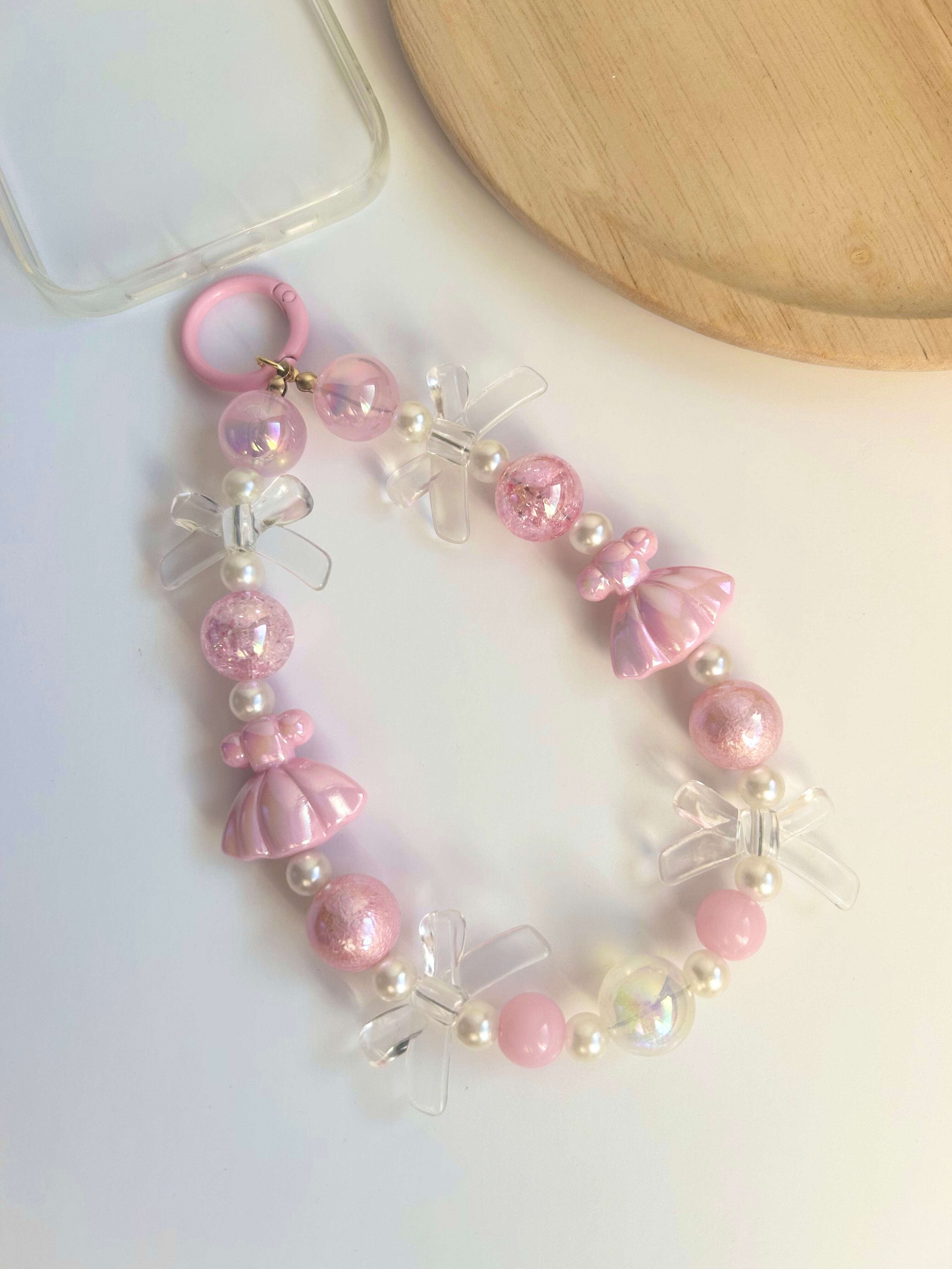 【スマホストラップ】dress スマホストラップ ストラップ ビーズ ビーズアクセサリー ドレス プリンセス 推し活 推しカラー リボン ピンク